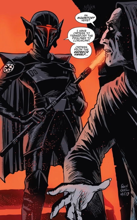We are introduced to a new Inquisitor: The Fourth Sister, a female alien with yellow skin and played by Rya Kihlstedt. Lina Graf once used her helmet to impersonate her in the ‘Star Wars Adventures: Return to Vader’s Castle’ comics.