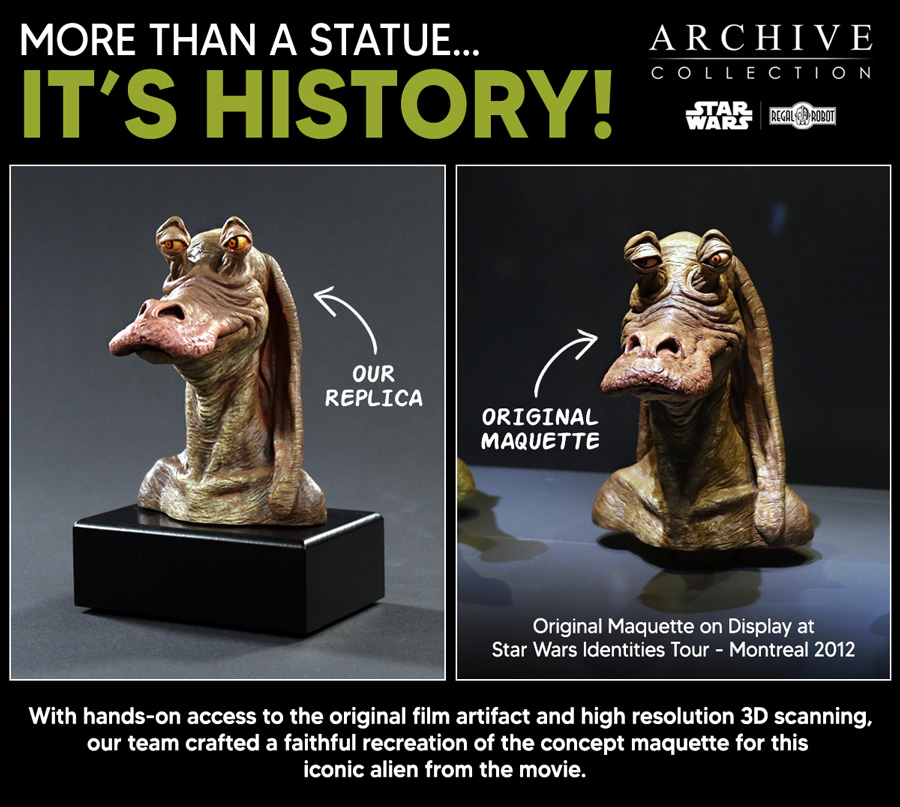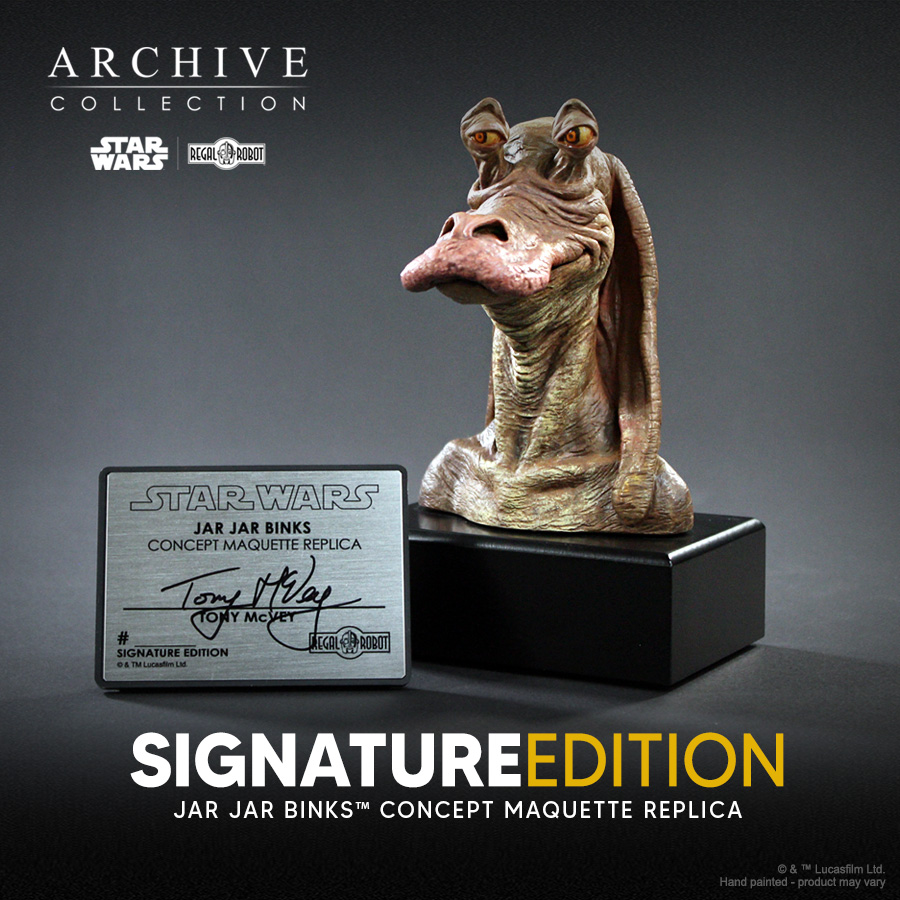 Commemorating the 25th Anniversary of Star Wars: The Phantom Menace™ is this very special Legacy Edition Jar Jar Binks™ Concept Maquette Replica which goes beyond a signature edition to provide each owner with a truly unique work-of-art.
