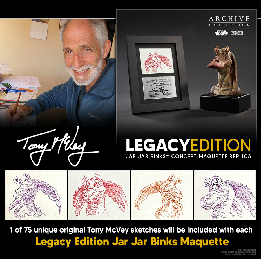 Each will include a unique, original Jar Jar sketch, hand-drawn by Tony McVey