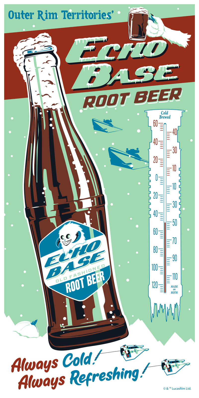 Echo Base Root Beer by Steve Thomas: This piece is a variant of his latest installment of Iconic Drinks collection, and while it’s the sixth licensed Star Wars drink print in the collection, Thomas has done fake drink “ads” for many other pop culture properties as well. It’s limited to 95, and each comes hand numbered with a certificate of authenticity.