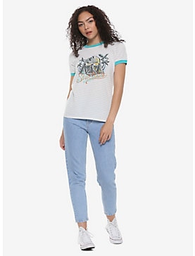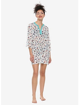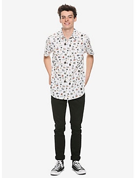 This woven button-up perfectly channels Star Wars-style summer vibes thanks to its fun pattern featuring sketches of Tatooine, Endor, Hoth, Dagobah, Darth Vader, R2-D2 chilling on an island, AT-AT Walkers, the Millenium Falcon, TIE fighters, palm trees and stars.