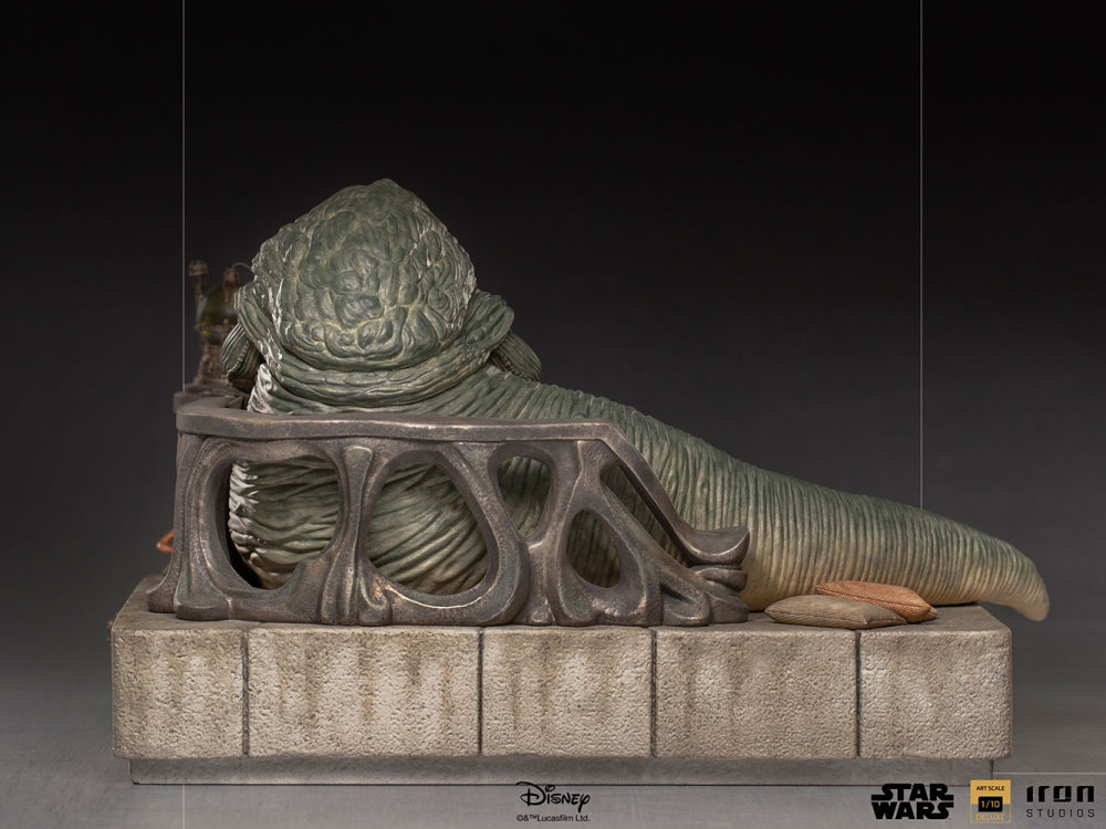 Sideshow and Iron Studios are proud to announce the latest from the Battle Diorama Series Art Scale 1:10 line – Jabba the Hutt Deluxe! This Star Wars Collectible Art Scale Statue is limited edition and comes with a detailed hand-painted base.