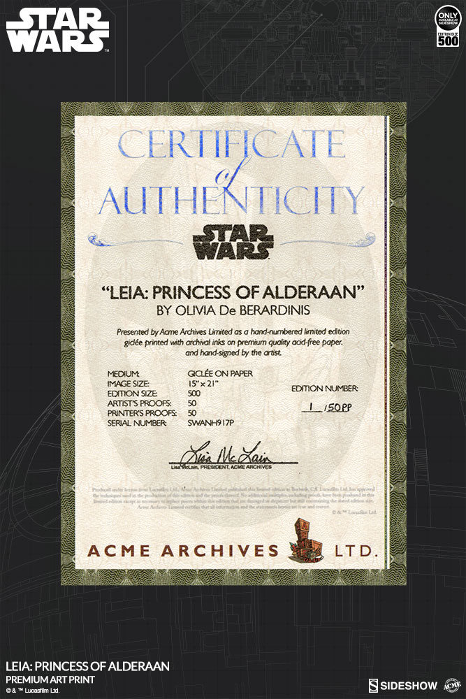 From a gallery far, far away- Sideshow and ACME Archives are proud to present the officially licensed Star Wars collectible Leia: Princess of Alderaan Fine Art Print by acclaimed artist Olivia De Berardinis.