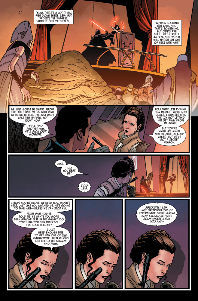 Han Solo is so close Leia can almost touch him, but with the massed ranks of the galaxy’s underworld and Darth Vader himself in the room, that’s easier said than done. From writer Charles Soule, interior artist Ramon Rosanas and cover artist Carlo Pagulayan, Star Wars #16 lands 18th August.