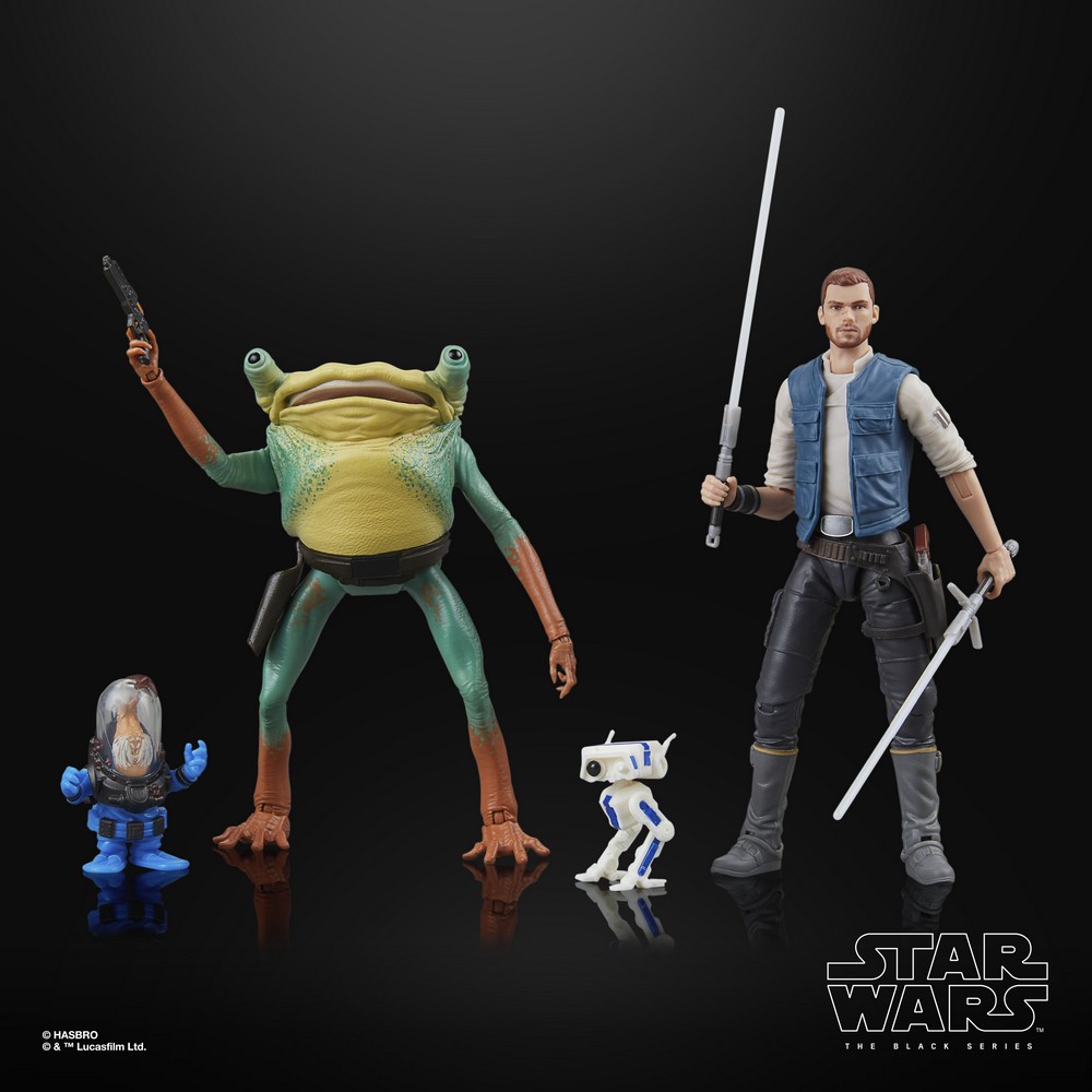 STAR WARS: THE BLACK SERIES includes 6-inch action figures, vehicles, and roleplay items from the 40-plus-year legacy of the STAR WARS Galaxy, letting fans create galactic scenes with a faithfulness to STAR WARS comic books, movies, series, and more. This STAR WARS action figure multipack is detailed to look like Cal Kestis, BD-1, Turgle, and Skoova Stev from STAR WARS JEDI: SURVIVOR. Comes with 7 accessories inspired by the game. Display STAR WARS fandom on your shelf with window box packaging featuring sleek character art. Look for more STAR WARS Gaming Greats Black Series figures to recreate your favorite in-game moments — or imagine your own (each sold separately, subject to availability).