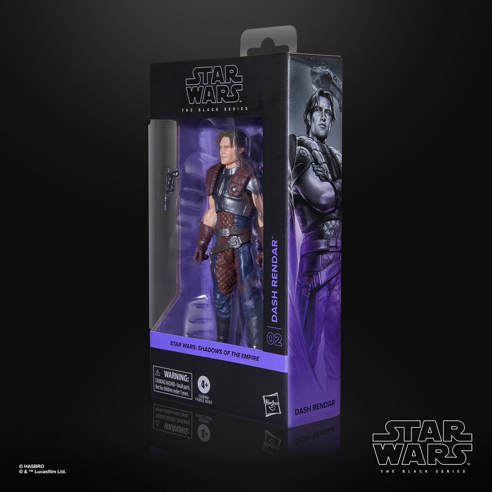 STAR WARS: THE BLACK SERIES includes 6-inch action figures, vehicles, and roleplay items from the 40-plus-year legacy of the STAR WARS Galaxy, letting fans create galactic scenes with a faithfulness to STAR WARS comic books, movies, series, and more. This Dash Rendar figure is inspired by the multimedia SHADOWS OF THE EMPIRE storyline — a great gift for collectors and fans ages 4 and up. Comes with 1 accessory for dynamic posing on fan shelves. Display STAR WARS fandom on your shelf with window box packaging featuring sleek character design. Look for more STAR WARS: THE BLACK SERIES 6-inch action figures to recreate your favorite scenes — or imagine your own (each sold separately, subject to availability).