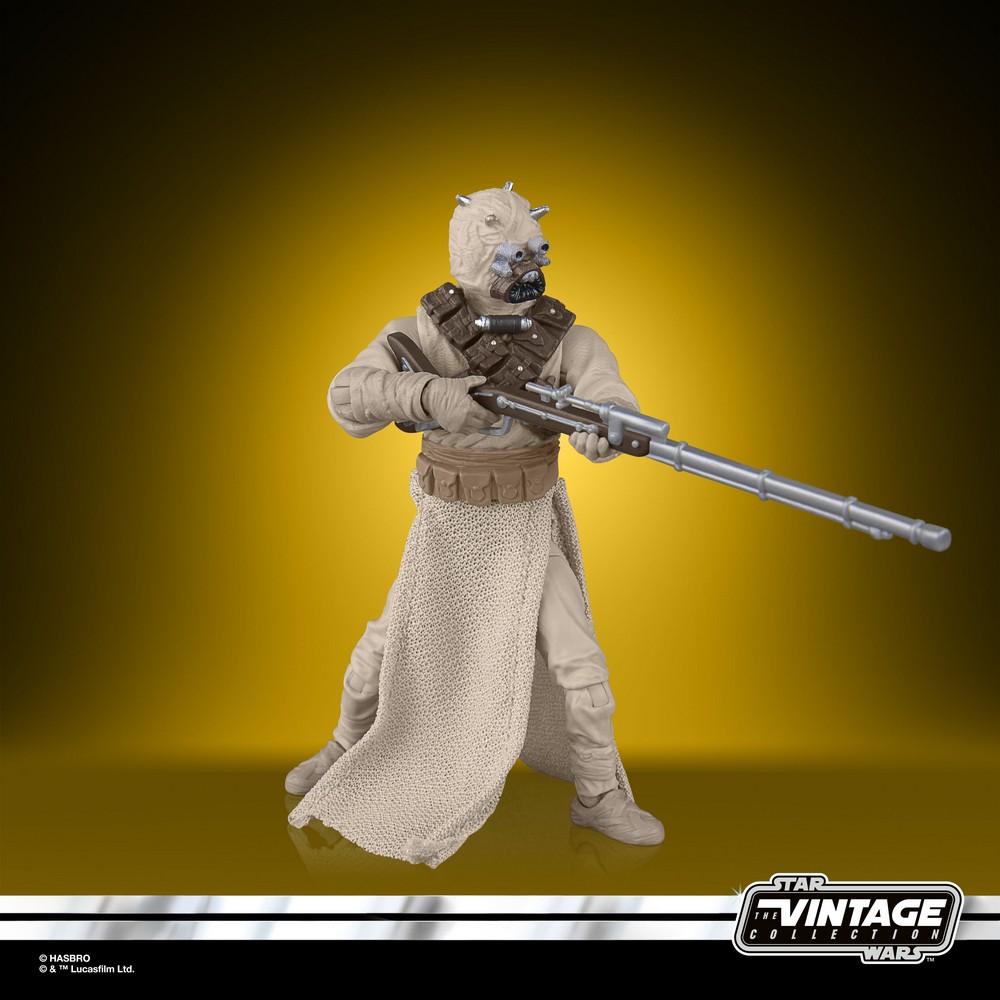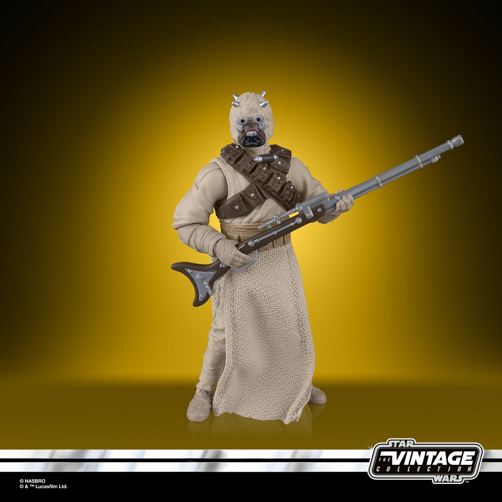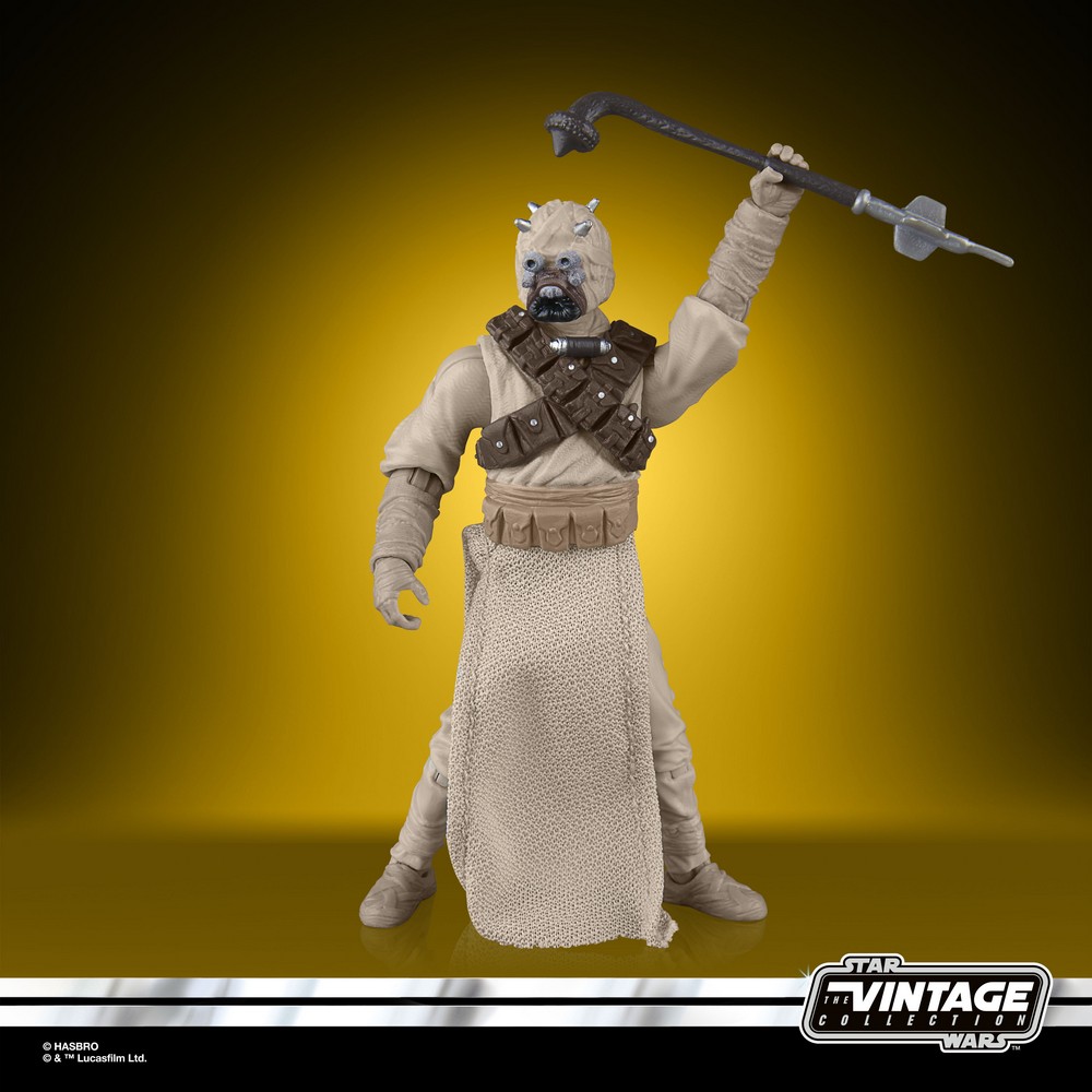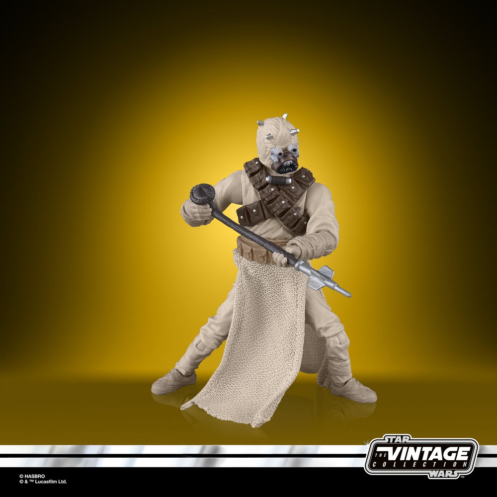 Celebrate the legacy of STAR WARS with premium vehicles, playsets, and action figures from the STAR WARS: THE VINTAGE COLLECTION. Based on a Bantha and Tusken Raider from STAR WARS: A NEW HOPE, this 3.75-inch-scale action figure set features scene-inspired photoreal design and multiple points of articulation. Pose out the fan-favorite Bantha with moveable legs and tail, articulated ankle joints, and twistable neck, plus a mouth that can open and close. Includes a packed-on saddle and the Tusken Raider (Bantha Rider) features a gaffi stick and rifle accessories. Calling back to the original 1970s and 1980s vintage toys, this action figure set features Kenner branding and package design with a unique VC number for collectability (VC #380). Find other THE VINTAGE COLLECTION collectibles from the STAR WARS franchise (each sold separately, subject to availability).