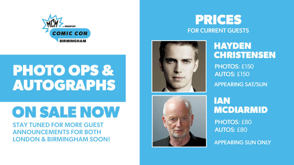 Don’t forget, you can also get your autographs and photographs for the shows two sithly stars Hayden Christensen and Ian McDiarmid and on Saturday 13th at 2.45pm check out Shadow of the Sith author Adam Christopher on the Live Stage as he is interviewed by me, Mark Newbold.