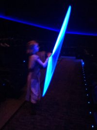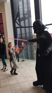 Sophie dressed again  as Rey carrying her lighsaber with pride through the shopping centre , she came across the Darth Vader who engaged in a fight with her! Of course Sophie won!