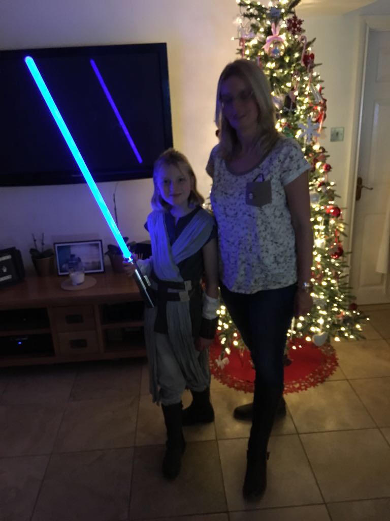 Sophie dressed again  as Rey carrying her lighsaber with pride through the shopping centre , she came across the Darth Vader who engaged in a fight with her! Of course Sophie won!