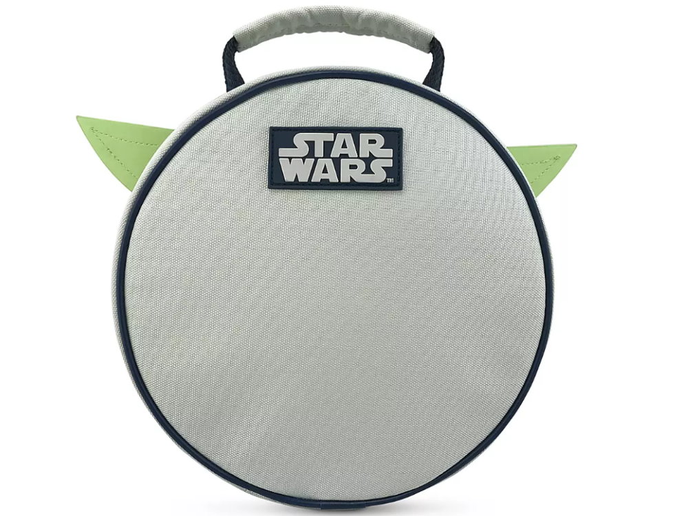 Pack a galactic snack or a full meal in this adorable lunch box featuring The Child (aka ”Baby Yoda”) in his high-tech pram. Stylized appliqué is sewn on front of soft tote that features double zip closure and carry handle. Frog not included.