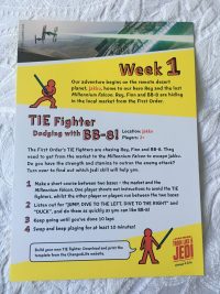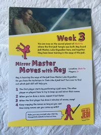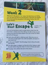 The pack includes a 6 week challenge, children are challenged by a Star Wars hero each week to complete a game or activity and are encouraged to do the challenge for at least 10 minutes each day. There is little preparation needed and if children complete the challenge they choose a sticker from the selection and put it on their sticker chart that features 5 planets from the new trilogy and The ship The Supremacy.