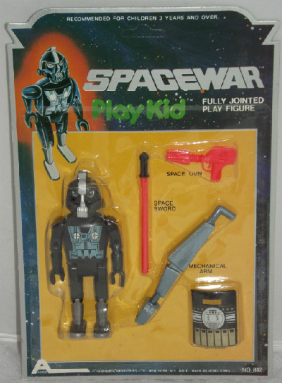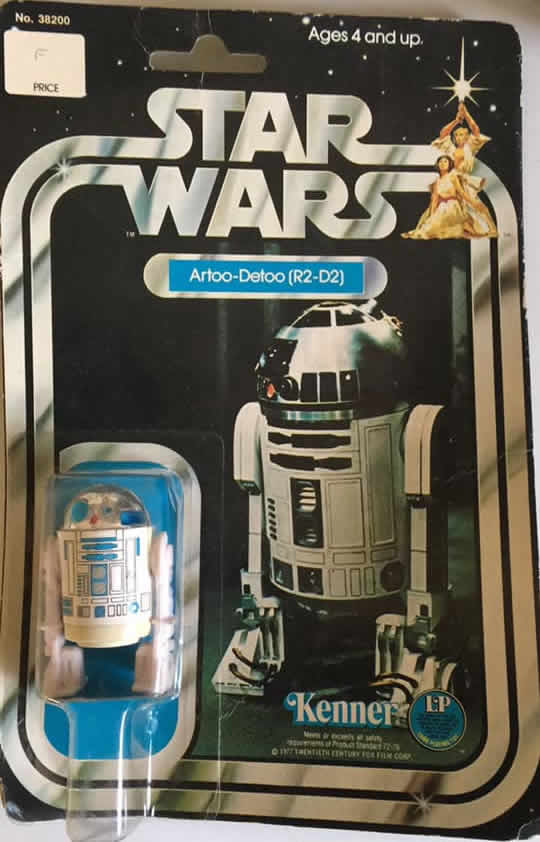 So, what John had discovered were standard Kenner 12 backs with an odd blue sticker on the back of the card, and their matching Arco Space War bootlegs. Doing a bit of research he discovered that they were presented in evidence in a trial on 13th September 1978 by Arco in a court case brought by Fox which they ultimately lost. Looking at the figures below you can see why!