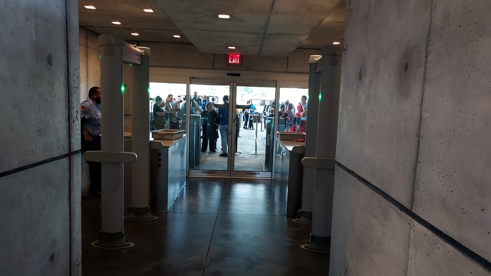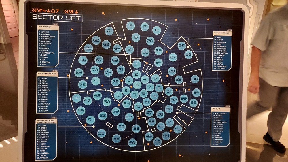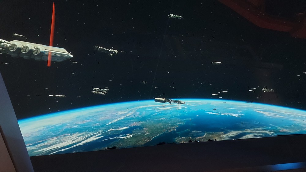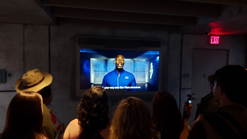 At this point you’re still in the ‘real world’ of Orlando, and as you wait and shuffle slowly forward we eventually enter an open room, where a screen lights up and Mark Daniel (yes, the voice you hear at the opening of every Fantha Tracks podcast as well as a familiar face from Star Wars Celebration and Disney World) gives a brief rundown of what’s in store. From here, it’s the GFFA all the way as the doors slide open and we enter the shuttle that takes us on our way from the ground and up to the Halcyon.