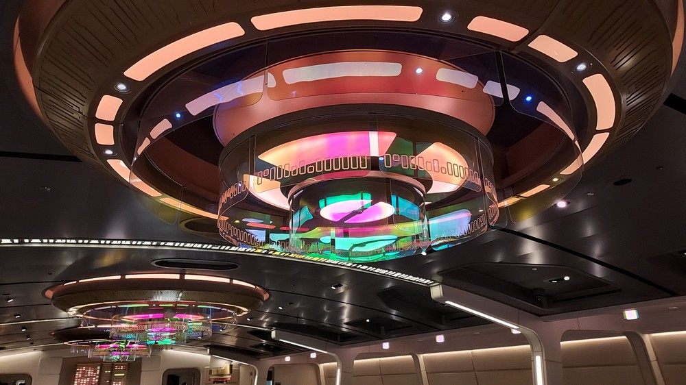 Deck 4A is where the glorious Crown of Corellia lies, a long room with tables to the center and booths along the walls that served as home not only for the buffet and evening meal, but is where the ships megastar guest Gaya performs. The food is incredible, endless and satisfying mixing flavours, textures and colours to deliver food that genuinely felt like it came from the galaxy far, far away. The food was rich, strong flavours mixed to deliver food you’d never find on Earth, but on day 2 as the middle course of a five-course meal we had steak, and it was melt-in-the-mouth superb (so much so I was initially paying more attention to my steak than the action happening around me). The food and the service was 5-star quality, and when you watch every table get served at the same time by a clearly well-drilled serving team who leave the kitchen in unison and aim for their alloted tables so everyone in the room is eating at the same time, you know you’re in safe hands.