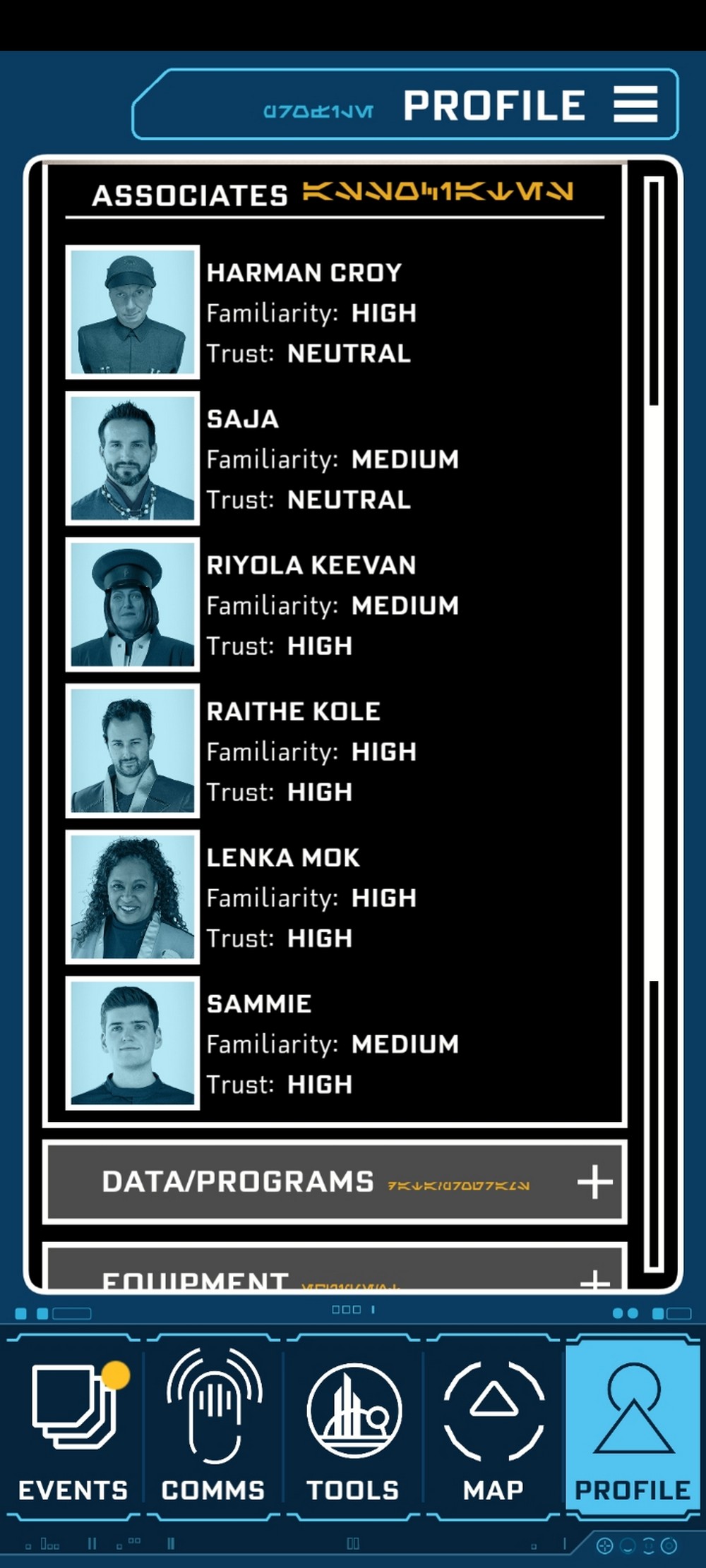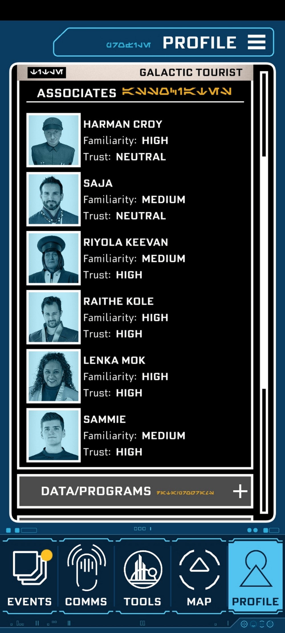 Our first trip, I was a little overwhelmed. I’m a reticent person by nature, not very comfortable around people I don’t know. So none of us really dived into the story lines. Our path was “smuggler adjacent.” We were never invited to join Raithe in the heist, but we did complete missions through our datapads.