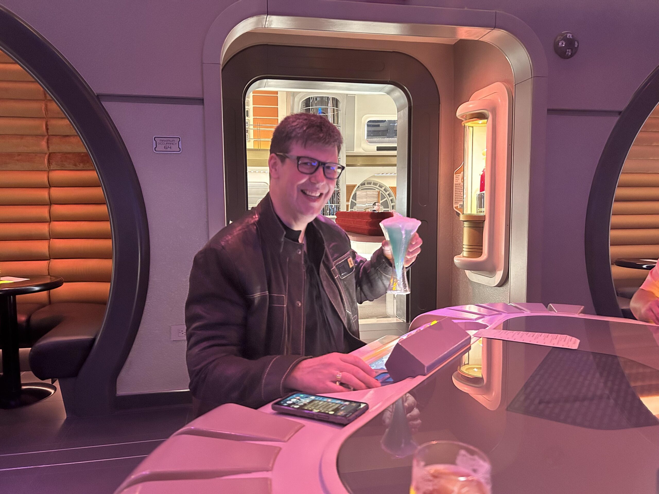We couldn’t believe the amount of detail and how immersive the experience was. We thought it would be a hotel that had some “Star Warsy” details and some actors to make it look like Star Wars, but we never imagined how much story there would be. Gaya is the perfect example. We didn’t see her until she came in to perform in the Sublight Lounge. I thought, ok they have a singer dressed as a Twi’lek to make her look Star Wars. What I never imagined was how fully developed she was as a character with an intriguing backstory and associated missions. That turned out to be true of everything and everyone. I would also be remiss if I didn’t mention the white glove service on the ship and the food that was far beyond “theme park” quality.