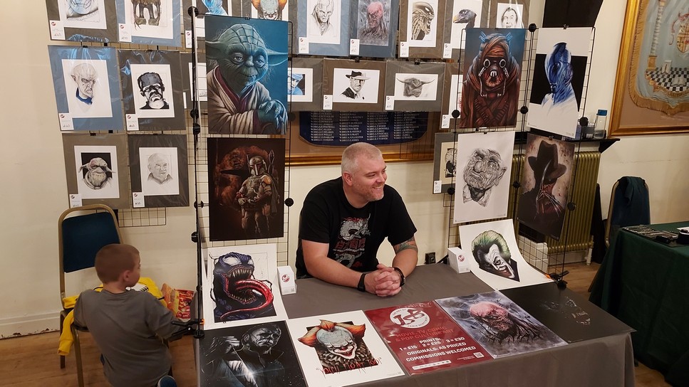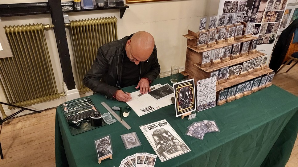 Also there was our good pal Topps artist Rutvig Vaid, studiously drawing away for the day as we checked out the various stalls at the show, Upstairs was a mixture of signers, stalls and artists, while the always industrious Joker Squad were occupying a healthy space at the back of the room. Always friendly and ready to engage, it was a pleasure to catch up with the crew at the show.