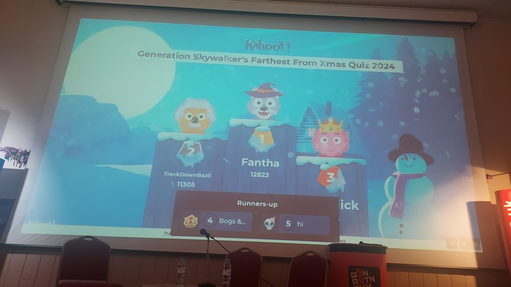 The evening saw the annual Christmas meal and entertainment which was hosted by Generation Skywalker and it was packed out. They did a stellar job. We were treated to Q&A’s with Steve, Brian and GW Acrylics and in-between all that there was the Sit Down Picture Game, the 2nd Generation Skywalker Auction (with Disney Parks and Skywalker Ranch offerings) and the Star Wars quiz where teams were playing for the ultimate prize – respect. We won the quiz. Did we mention that Team Fantha won the quiz? We won the quiz.