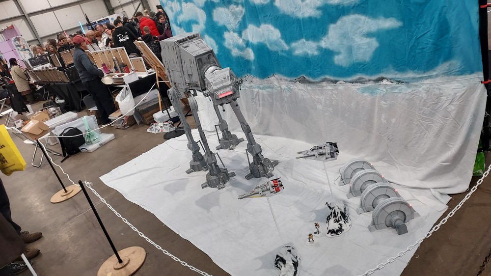 It’s one thing to get into the room, but there needs to be something to do when you’re there, and Festival of the Force certainly delivered in that respect. Displays were placed around the room, models of vehicles, an X-Wing diorama, AT-AT being attacked by Snowspeeders not to mention the presense of costuming groups including Joker Squad, DroidBuilders UK and Saber Guild. Fancy facing down a fearsome Wampa (or ‘bear’ as Julian Glover said), or checking out just how big a Star Destroyer is? If so, Newark was the place to be.