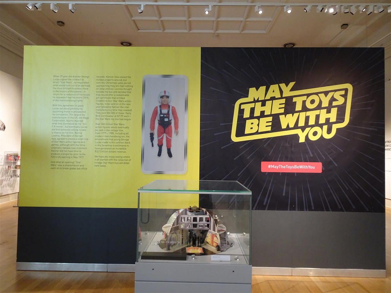 I recently visited the May The Toys Be With You exhibition at Leicester’s New Walk Museum & Art Gallery. This is a touring exhibition, having already appeared at several other museums around the country including Torquay, Southport, Paisley, Basingstoke, Liverpool, Gosport, Canterbury and Barnsley. However, Leicester seems the most fitting location for an exhibition of Star Wars toys given that Palitoy, the company responsible for the iconic vintage Star Wars toys in the UK was based at Coalville just outside Leicester city. You might say it’s the home of Star Wars toys in the UK.