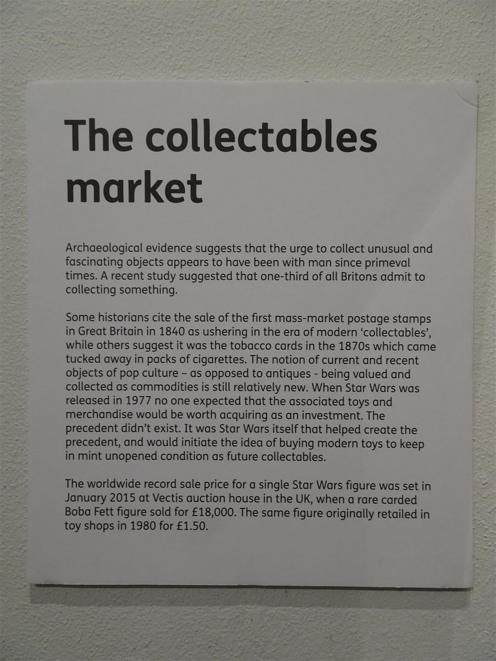 The exhibition displays the collection of Matt Fox from Canterbury, features and extensive collection of vintage Star Wars toys, posters and artwork.