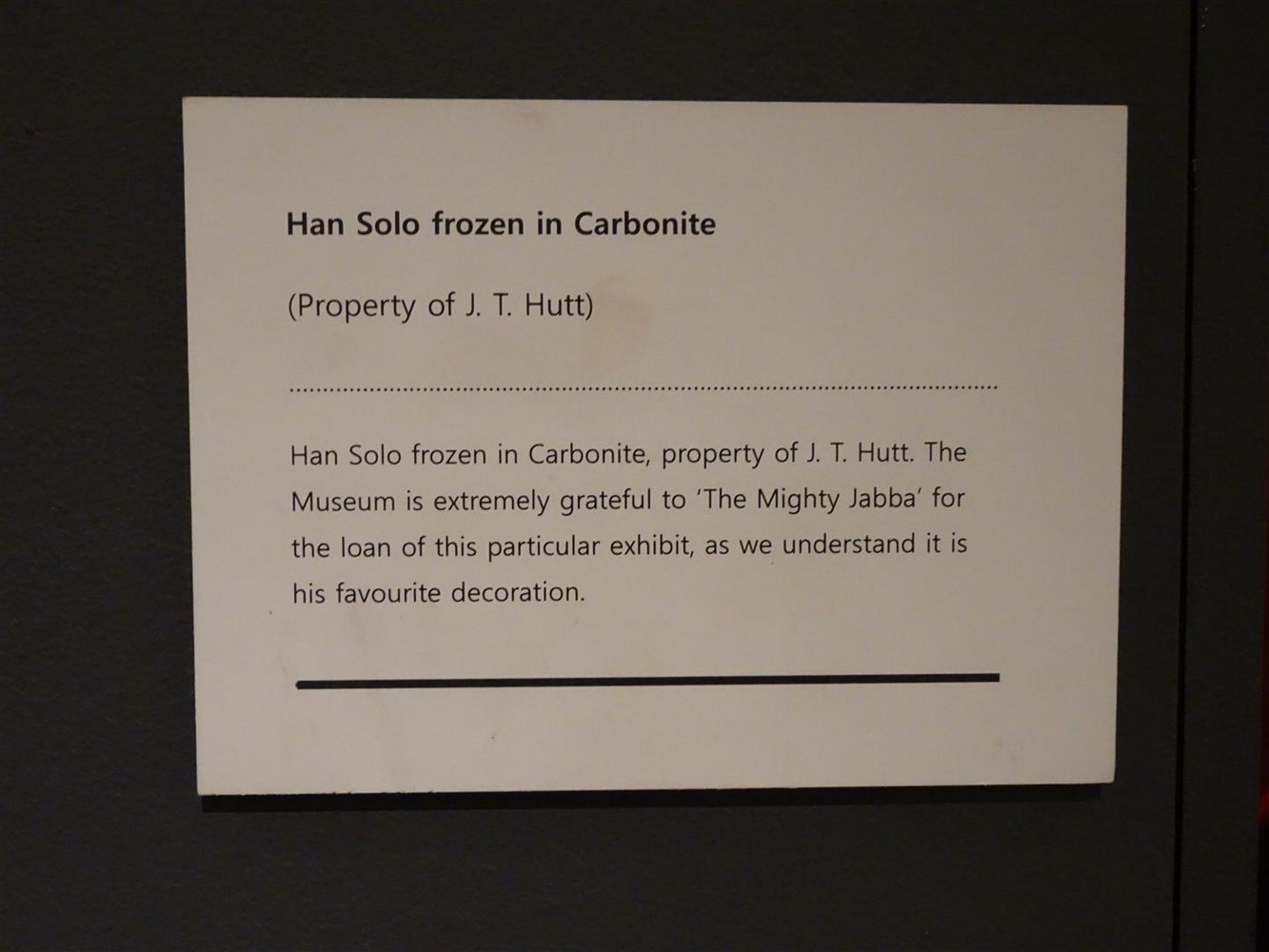 In the centre of the room is a life size Han Solo frozen in Carbonite and two Stormtrooper, providing a photo opportunity for those inclined.
