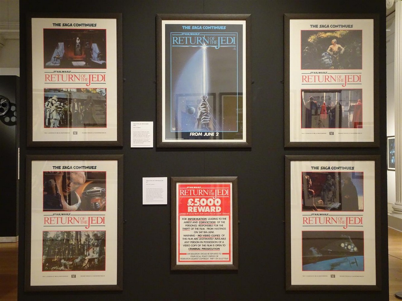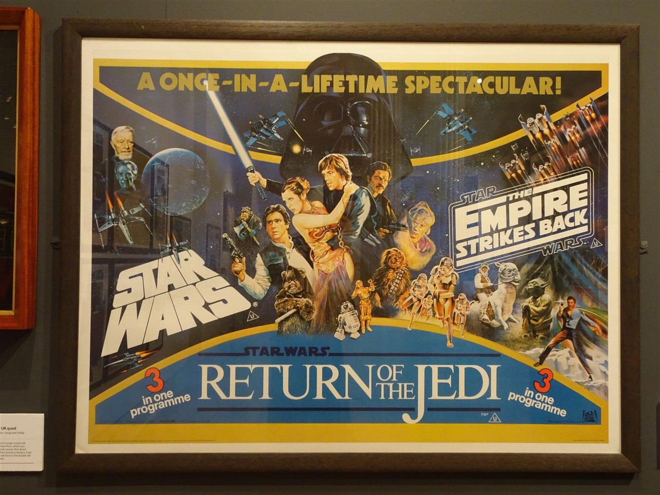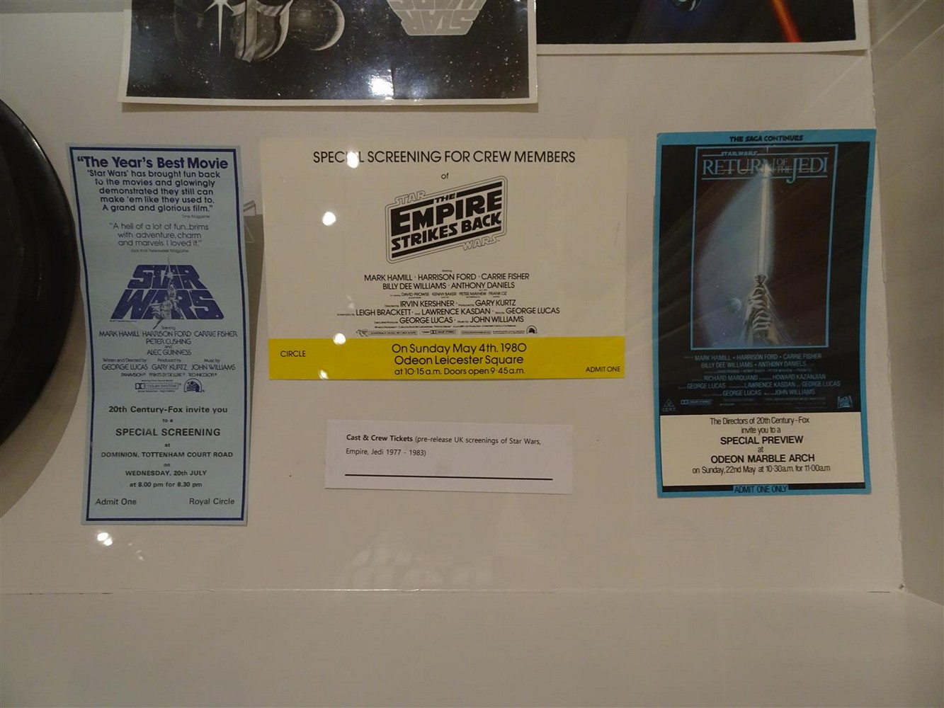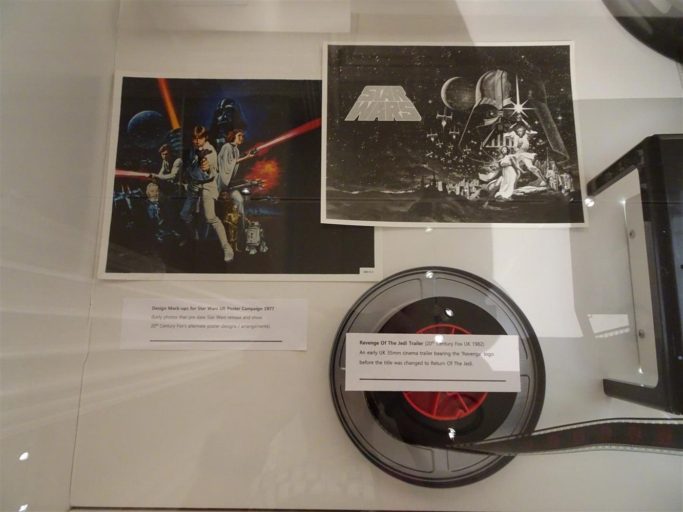 This section also has a case displaying rare promotional materials on UK screenings and events as well as an incredibly rare 35mm film of the ‘Revenge of the Jedi’ trailer. This is displayed with a lightbox so you can see a cell featuring the ‘Revenge of the Jedi’ logo.
