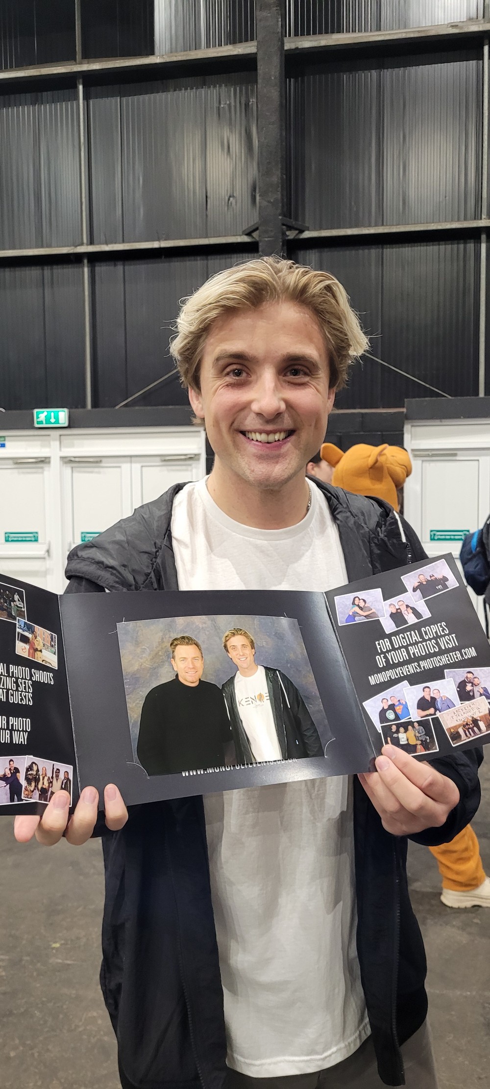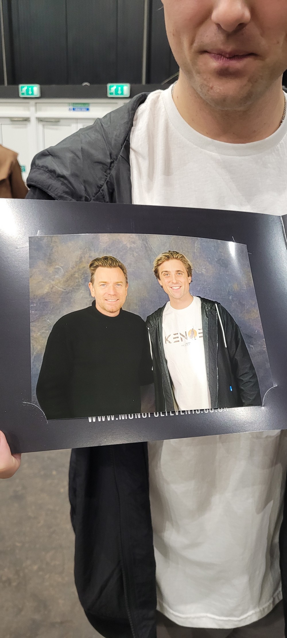 Jon’s photo session with Ewan was swift, yet memorable – Ewan pulling Jon back towards him to shake his hand. Later that day I queued with Matthew and Jon to meet Ewan for an autograph. It was a fleeting few moments.