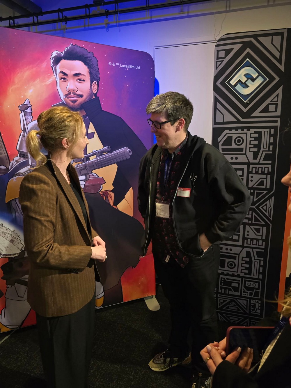 For me ‘finish’ was at 3.15pm, as I had a three hour drive north in the rain through country lanes and hold-ups to Redditch for the Echo Base Star Guest Dinner, so I made my goodbyes, grabbed a bag of swag and thanked the team from Asmodee for a fascinating day that saw me set up my first deck, watch my first game and get truly excited to learn more about Star Wars Unlimited. Since the event last week I’ve ordered the starter set Intro Battle Hoth, to learn the mechanics of playing and perhaps find a local group to play some more, and hopefully if Fantha are invited to future launch events I might know enough to play a hand or two.