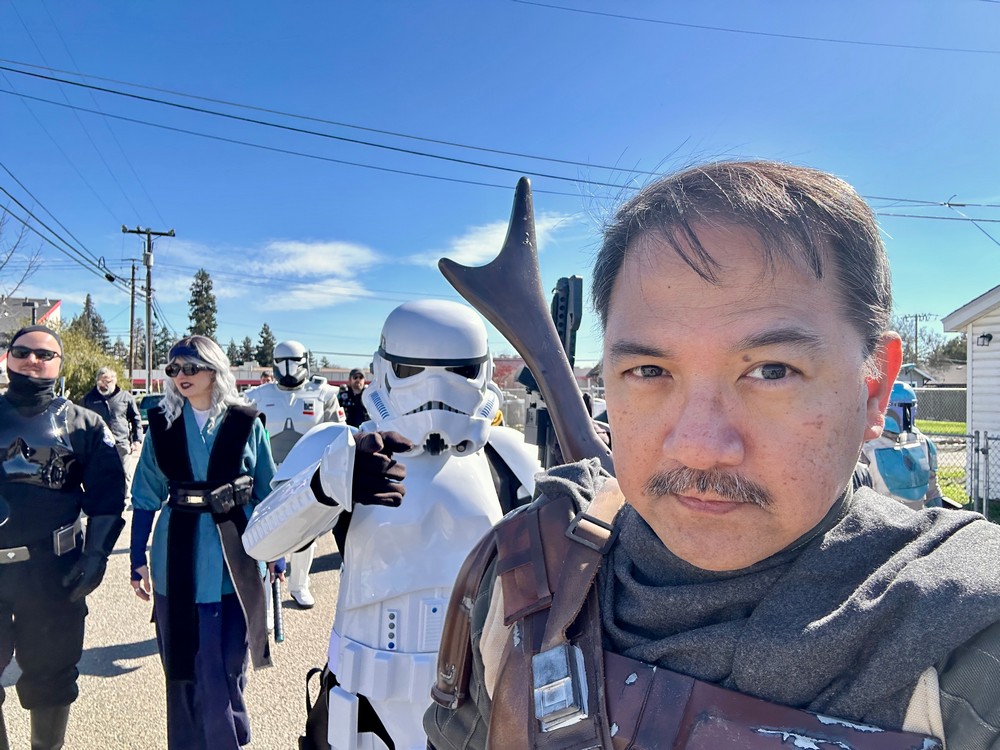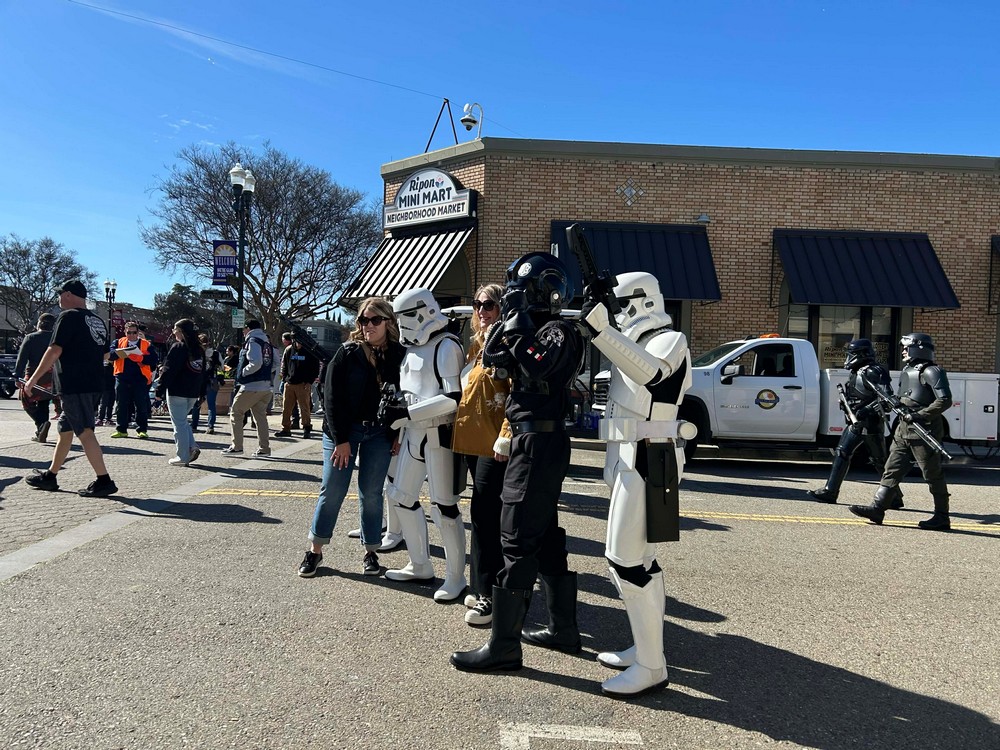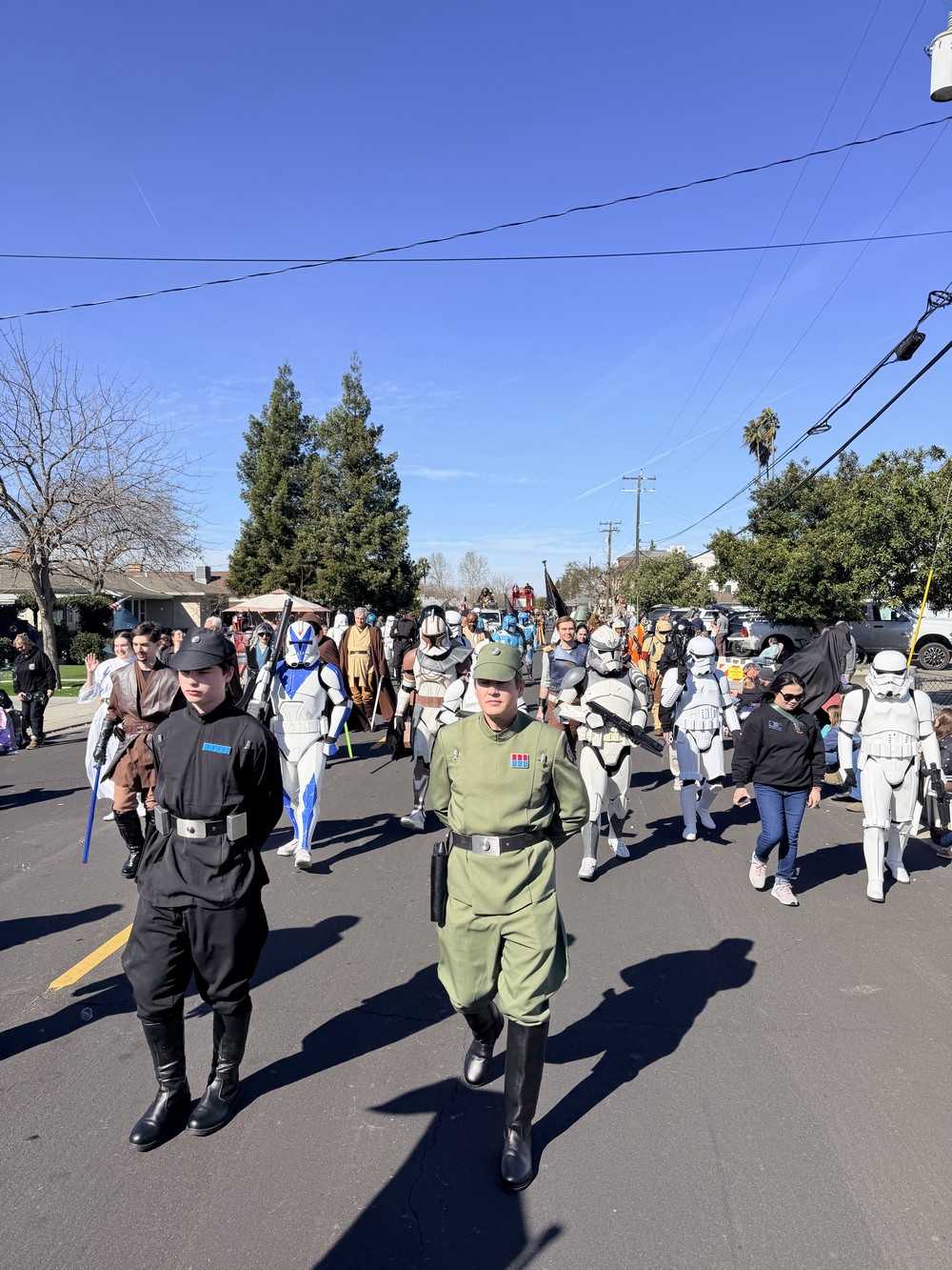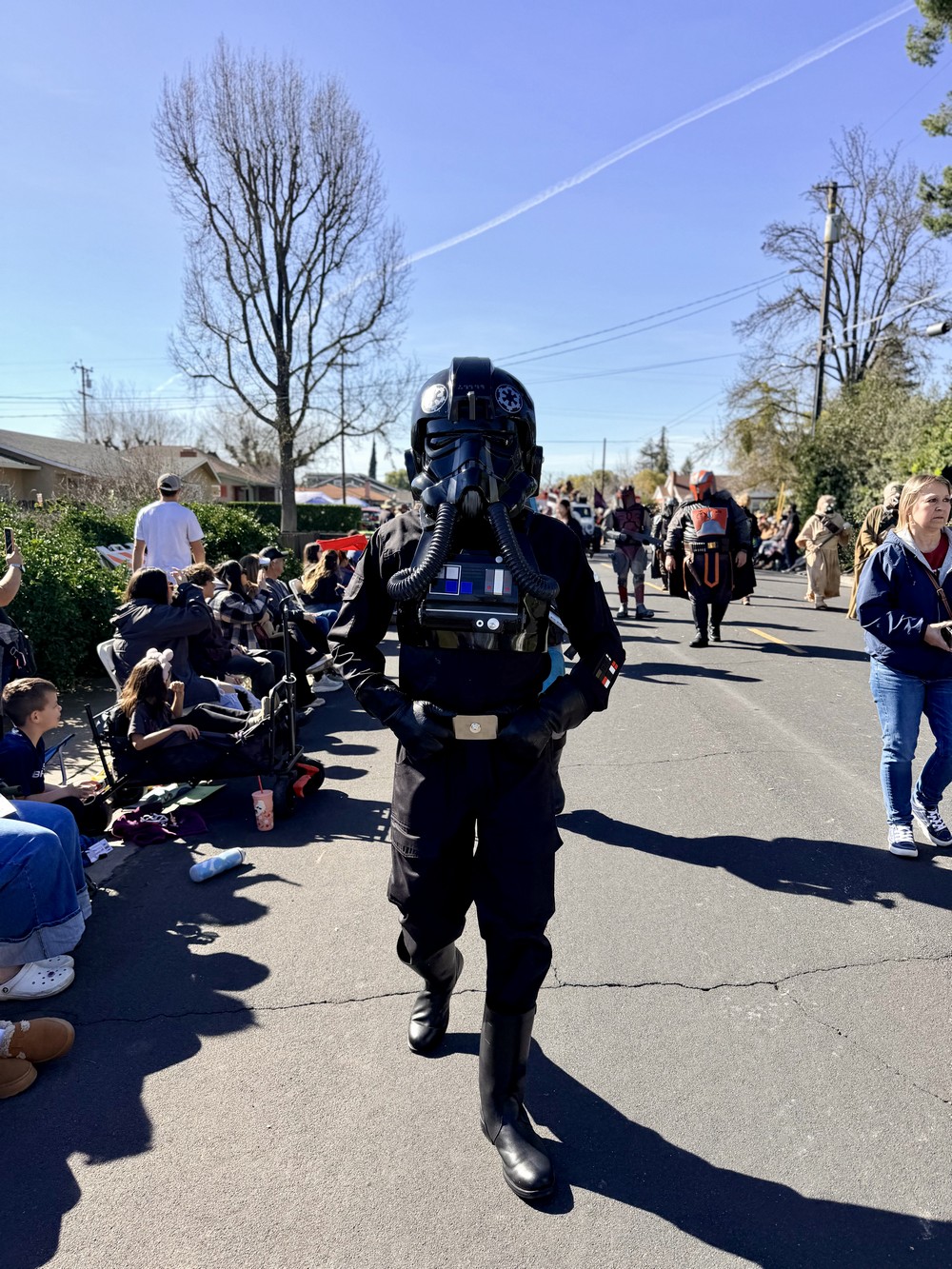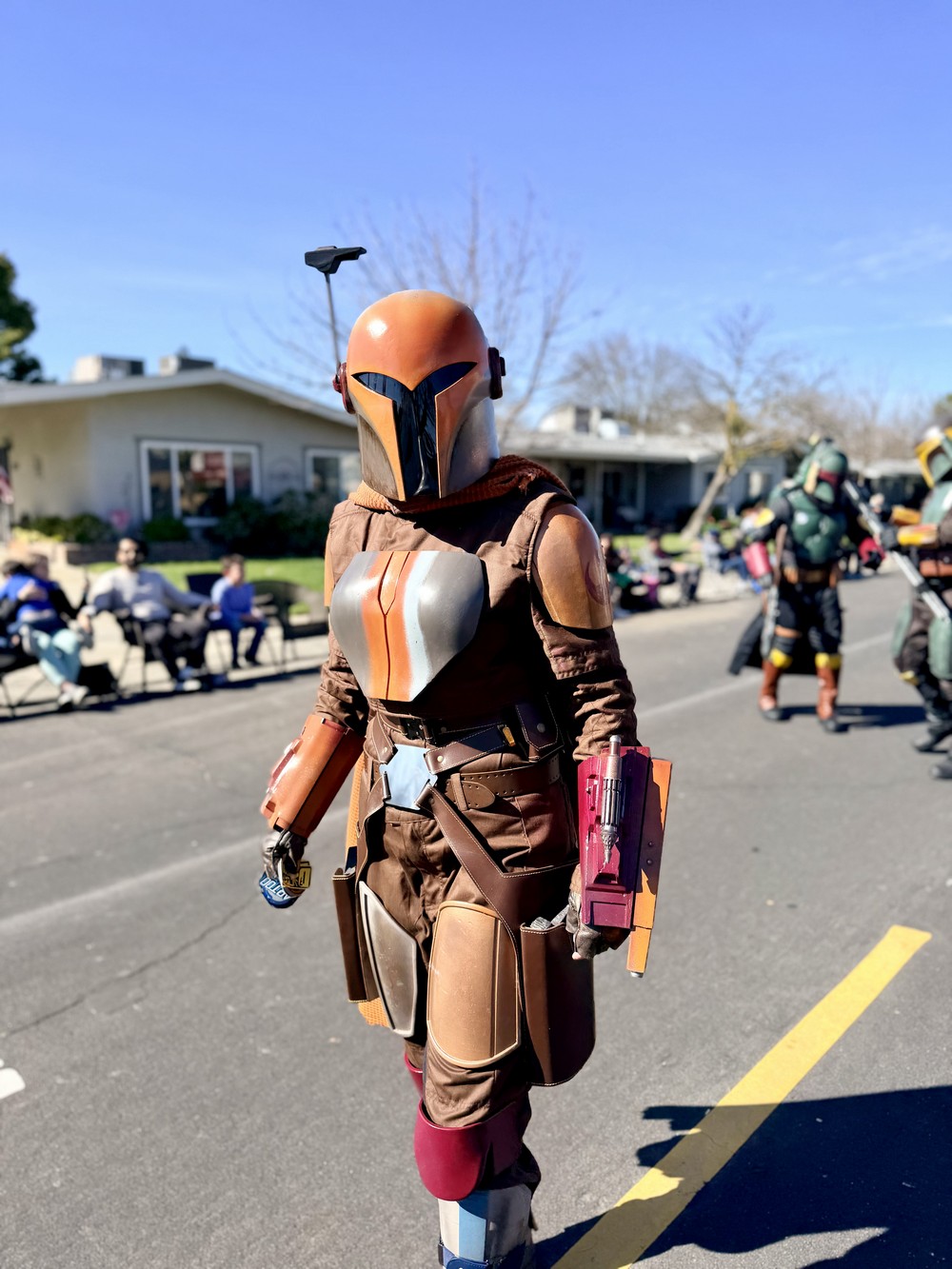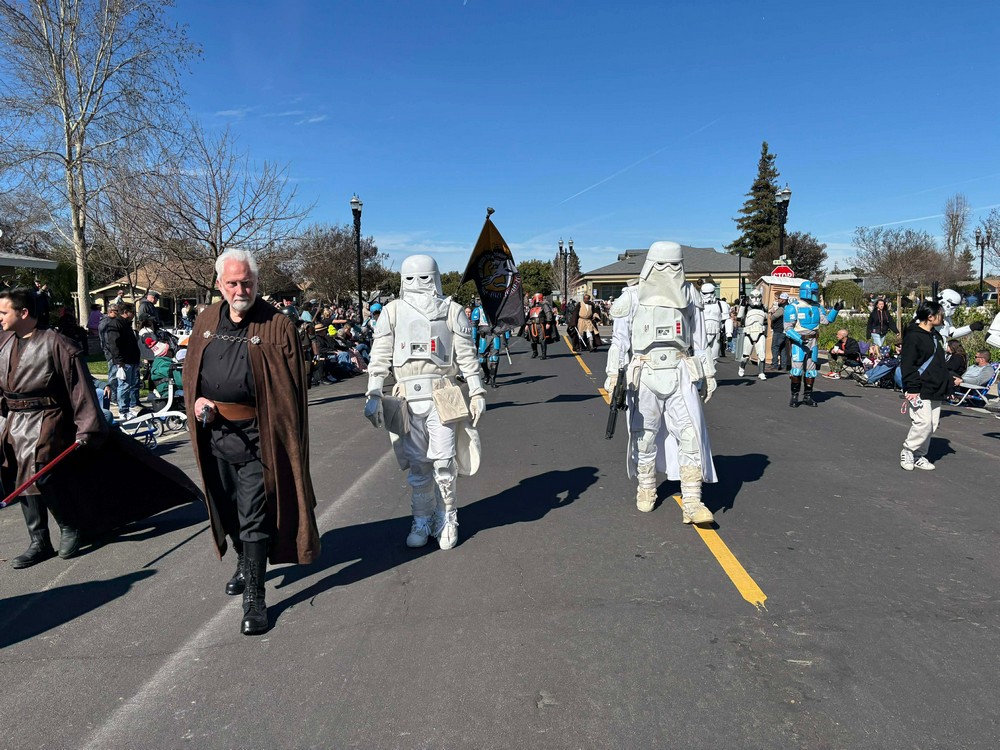 When he first joined the Legion, Jamie noticed that many of the parades on the calendar were long and punishing, especially in the Central Valley heat. He began looking closer to home. Ripon’s Almond Blossom Parade, centrally located for Northern California, offered something different: cooler February weather, a flat and nearly circular route, and a relaxed pace that allows costumed members to interact with spectators. For armored troopers, it is, as he puts it, “a win.”