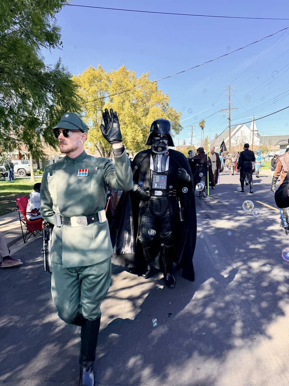 For the past eight years, the Central California Garrison of the 501st Legion has marched in the parade, bringing a touch of Imperial spectacle to this longtime community tradition.
