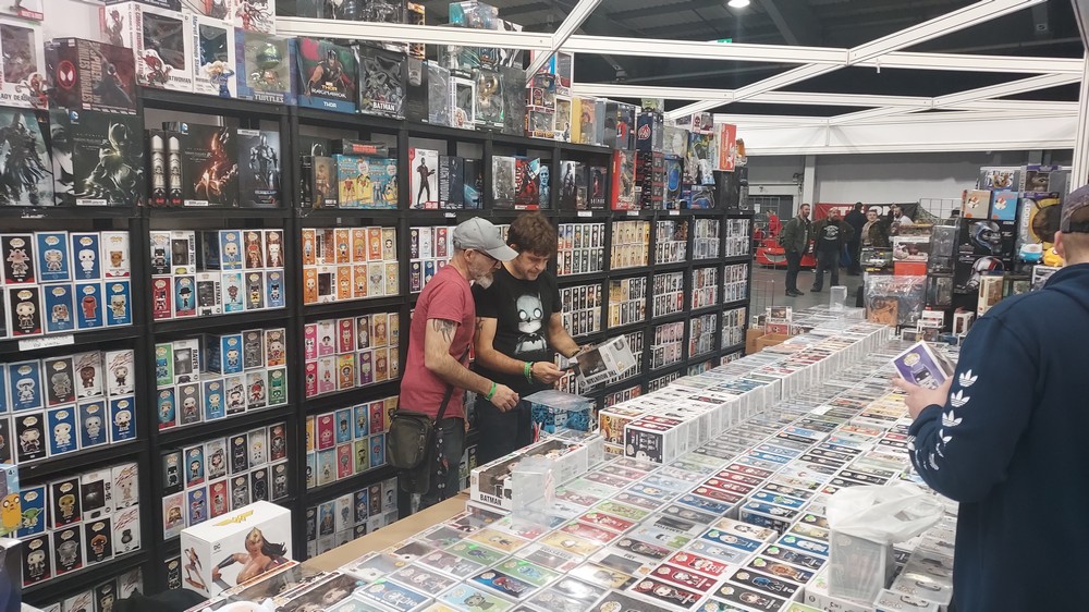 Mark Newbold: The tall ceilings of the Telford International Center loomed over proceedings, and as the images taken by Carl and myself show there were plenty of folks at the show, but also a good amount of room to roam. Dealers packed the center of the halls, a plethora of items available to peruse and purchase, including some stunning artwork from independent artists and folks like official Topps artist Jay Manchand, who you’ll be able to hear on an upcoming episode of Making Tracks.