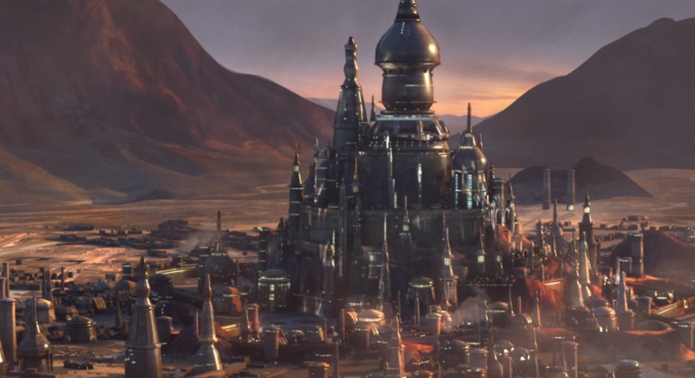 I will always enjoy the subtle nods to past stories like this episode’s visit to Han’s home planet of Corellia and them leeching a ride on a larger ship past the planet’s censors à la Han in The Empire Strikes Back as well as being reminded of the ever-useful phrase from ESB, “E chu ta.” The decommissioning factory is an obvious antithesis of the scene on Geonosis from Attack of the Clones: the conveyor belts, assembly line, the heated metal, a damsel in distress. However, I take issue with droids destined to be molten metal still having their computing innards intact