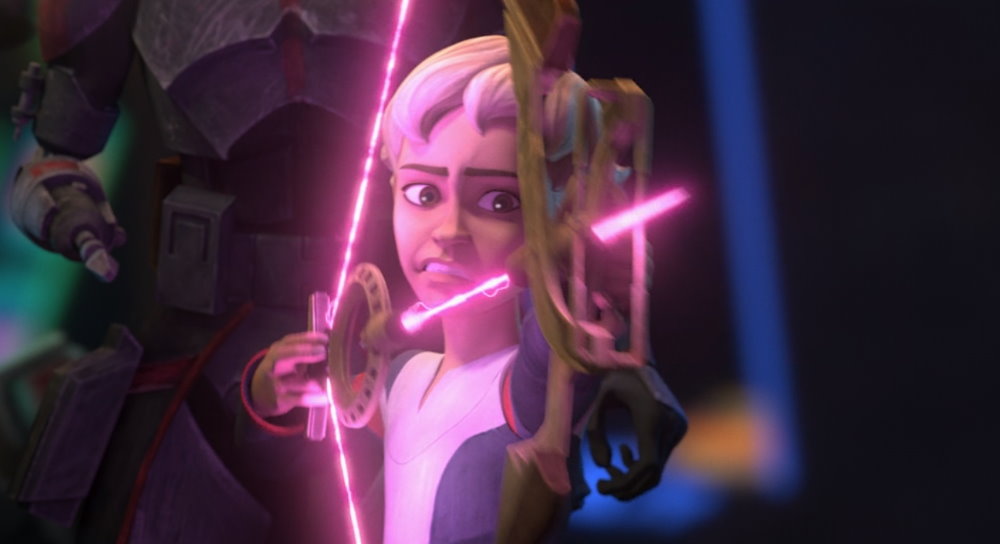 In the latest episode of The Dad (Bad) Batch, Decommissioned, the team finds themselves in Cid’s services and tasked to retrieve the helmet of a Separatist tactical droid. In the meantime, Omega is training to use the Zygerrian crossbow that she confiscated in the previous episode.