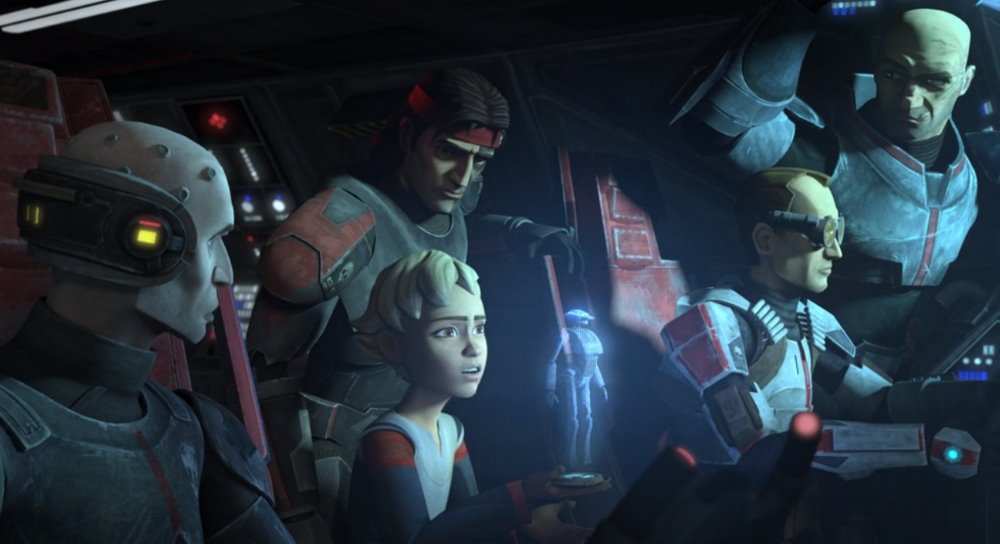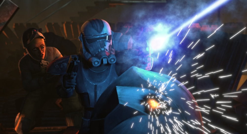 The episode has wonderful moments of levity—Trace asking, ”Is there an Echo in here?” and getting an affirmative response from Omega and Echo—and fear—Wrecker hits his head, yet again, and actually starts to recite, “Good soldiers follow orders,” before shaking it off to rescue everyone.