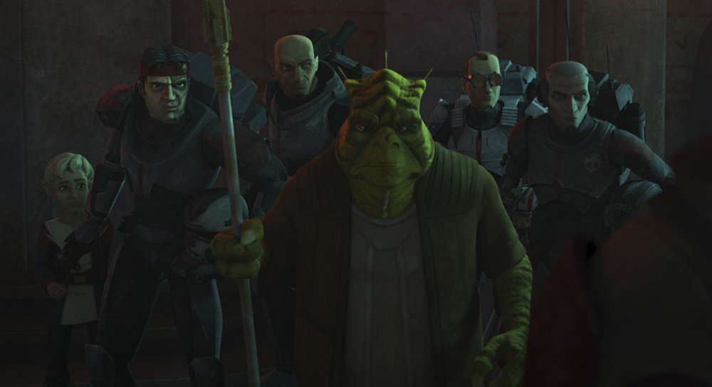 Whilst the episode doesn’t really advance the overall story (watch this one come back to bite me later), we are starting to see Omega’s compassion for others come to the fore, and despite initial reservations, Hunter going along with her – similar to last week’s episode where Omega and Hera influenced the decision to rescue her parents.