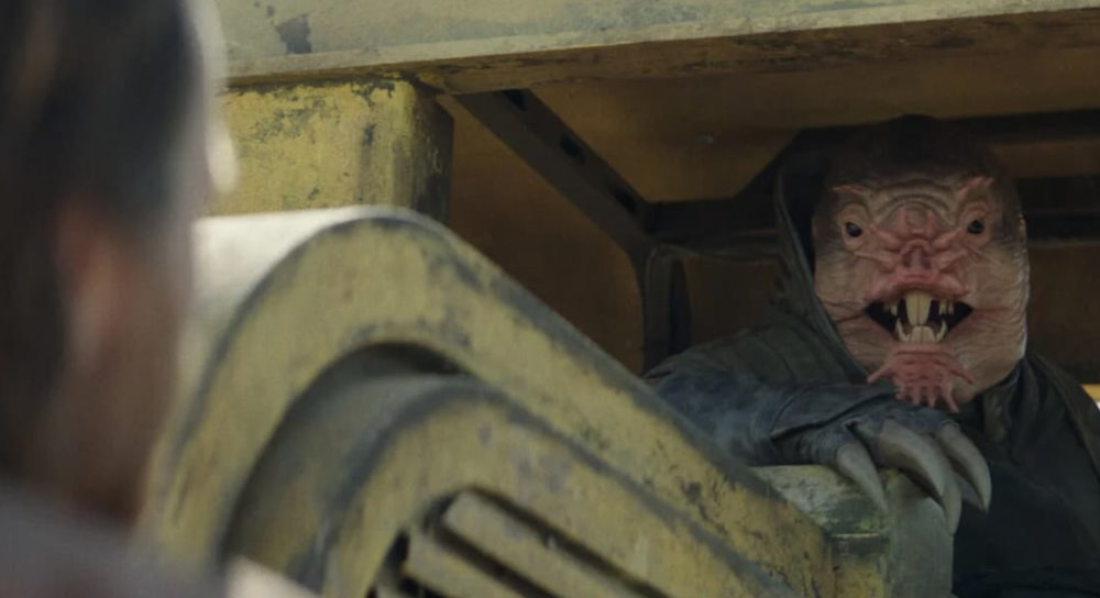 It feels really strange to say this but in my opinion we got way too much Darth Vader, and way too quickly. There was no real build up or suspense to this proverbial T Rex; no missing goat, no foreboding water ripples in the plastic cup (I know Steven Spielberg did something similar in Jaws, but I’m way too terrified to rewatch it for its details). Yes, we got to see a teaser shot at the end of the second episode which was rather well done. However, the montage of parts being attached to him felt a little rushed and it concluded with a clear and awkwardly framed shot of his unobstructed face. It all had a vaguely low budget feel to it.