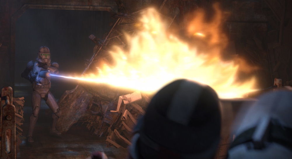 The final seconds of the episode have Hunter explaining to Wrecker, “we have to find her,” before the music intensifies, then drops to silence and black. The situation just became even more harrowing for what remains of Clone Force 99.