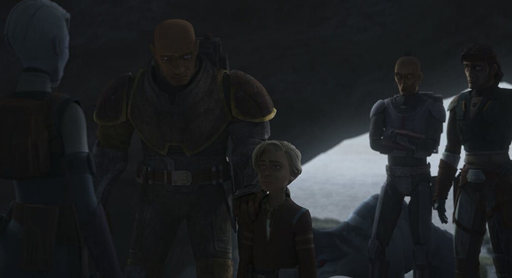 The title of the episode is “The Harbinger.” That seems very clearly to be Ventress, who arrives and leaves in this one episode. I’ve seen some reactions online that indicate that she is the harbinger of Pabu’s doom. I interpret the title more to mean that Asajj Ventress is the harbinger of Omega’s fate. That she is going to be faced with a choice: to say goodbye to her brothers in order to learn the ways of The Force or stay with them and fail to realize her full potential.