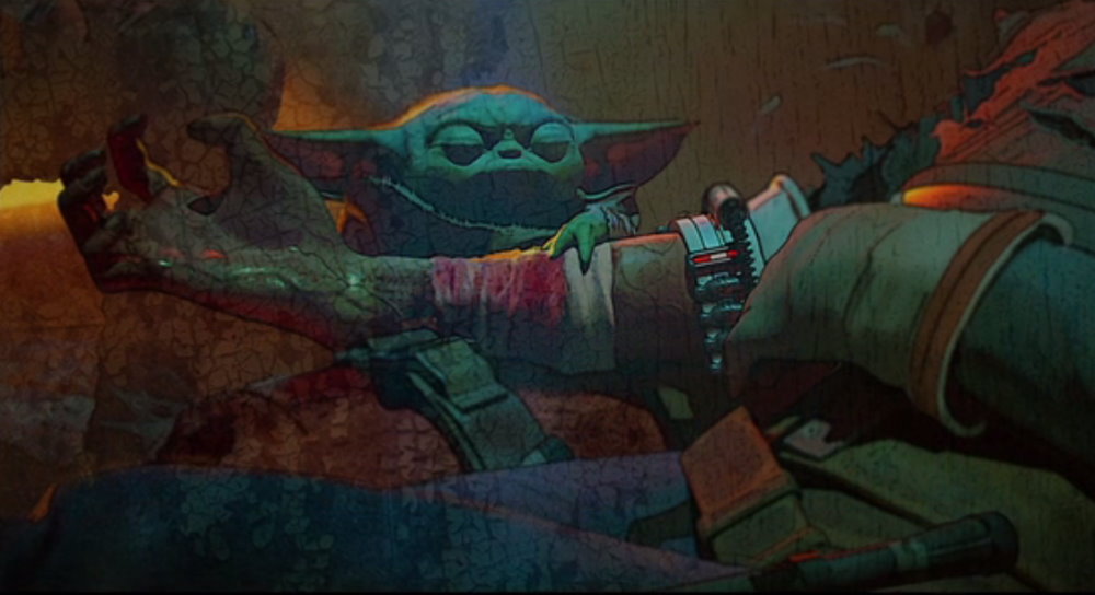 Suspense overload and the child’s innate instinct to protect the Mando is adorably impactful.