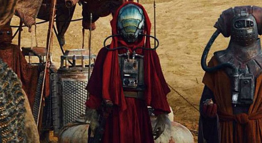 Leia is kidnapped by Vect Nokru (played by Red Hot Chili Peppers bassist Flea) and two others. While it is not confirmed, the green alien lady appears to be a Falleen, making their first live-action appearance. This mercenary was played by Amy Sturdivant. Aviel Ayoung plays the other unnamed mercenary. Sites claim he is a human, but you can spot some distinct horns on his head, making him instead a new unidentified alien species.