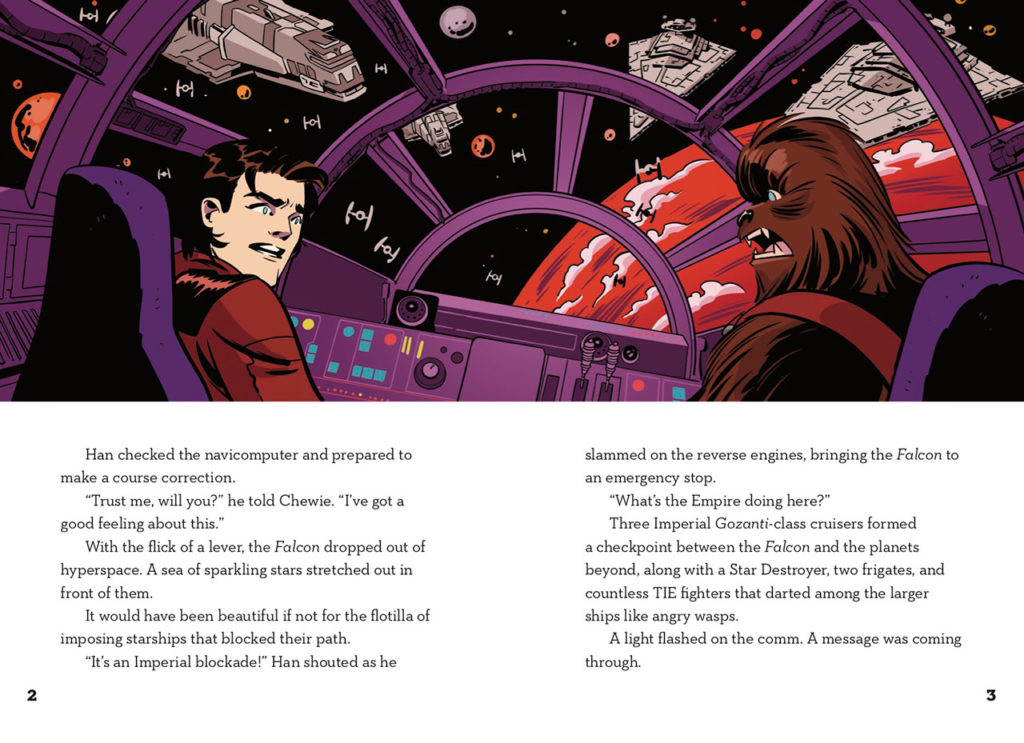 The story kicks off with young Han and Chewie on a seemingly easy smuggling run of stolen Imperial military equipment. The milk run comes to an abrupt halt when they come out of hyperspace and encounter an Imperial Task Force. Coincidence or specifically interdict the Falcon? It’s up to the reader to navigate them through the blockade and continue with the adventure which involves some new characters and a few drawn from IDW’s Star Wars titles.