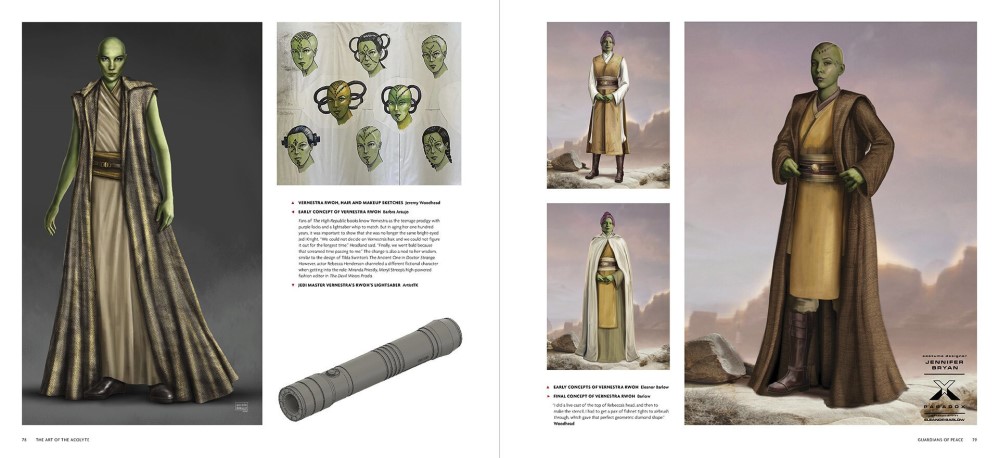 Opening with an introduction from showrunner Leslye Headland, we work our way through the journey from concept to screen. ‘The Pitch’ is a fascinating opening to the book, as Headland reveals that, “Star Wars was the main escape. The comfort. The inspiration. All those things.” Raised on the Special Editions, she dove into the GFFA, and after success with hit show Russian Doll she gave an elevator pitch to Lucasfilm that led to a more formal pitch in 2019, and from that – a mashup of Frozen meets Kill Bill, with a healthy infusion of kung-fu cinema – The Acolyte was born. With its central characters set and remaining through the development of the show, progress was made. Taking the same production name as Back to the Future 2 – Paradox – it presented an era a century before Episode 1, and the meaning of the project was not lost on Headland. She had an image of Ralph McQuarrie’s Leia Organa concept art from A New Hope tatooed onto her right hand, a visceral and lifelong reminder of just how much Star Wars means to her.