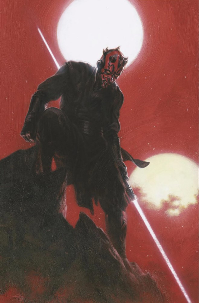 There are few things in the galaxy more terrifying than bering hunted down by a Sith lord, and when that Sith is Darth Maul, the most savage of all the apprentices, then you truly know your time is up. In the second issue of Darth Maul – Black, White & Red we see Maul on the hunt, but who is it he’s chasing down? The prey are a group of former bounty hunters and soliders known as the Remainders, a group who have survived in their chosen professions long enough to have outlived most of their competition, and so opted to move to the abandoned Moonbender Colony on the Outer Rim. Here they try their best to live a peaceful life, looking for some kind of absolution for their collective sins and staying well out of the way of the rest of the galaxy (much like Mother Aniseya and her sisters do on Brendok in The Acolyte.) The Remainders are the colony’s legal system, sorting disputes where needed.