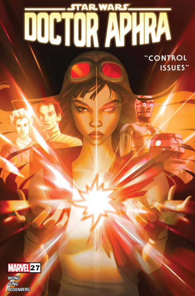We ended the previous issue with a huge explosion that cast into doubt the fate of the starship that Sana Starros, Magna and company were on and open the 27th issue of Doctor Aphra in that moment on the Outer Rim as Just Lucky and Ariole Yu look on, acting quickly to pull the detatched cockpit and its survivors aboard. Recouperating in bacta, Sana learns that not only was the Vermillion destroyed by Imperial forces, but she’s currently on Canto Bight, a guest of Ronen Tagge who manages to wrangle their compliance by informing them of the incredible cost of the bacta that was used to save them all. Lucky reminds Sana that there’s no escape from being in debt to Ronan as we swing to the Outer Rim and the Ark Angel IV where Aphra (aka the Spark Eternal), BeeTee and Triple-Zero are travelling until suddenly Aphra’s electro tattoos go crazy, knocking out the droids as the Spark and Aphra begin to converse. Aphra tells the Spark of the deal she made with the droids, how she built in backdoor protocols so they could never be sliced or hacked again (apart from by Chelli herself) and how she was ready to go down in flames to take out the Spark. They strike a deal allowing Chelli control of her body, but for a price – she’s to go Sith hunting, and her old adversary / employer Darth Vader is the target.