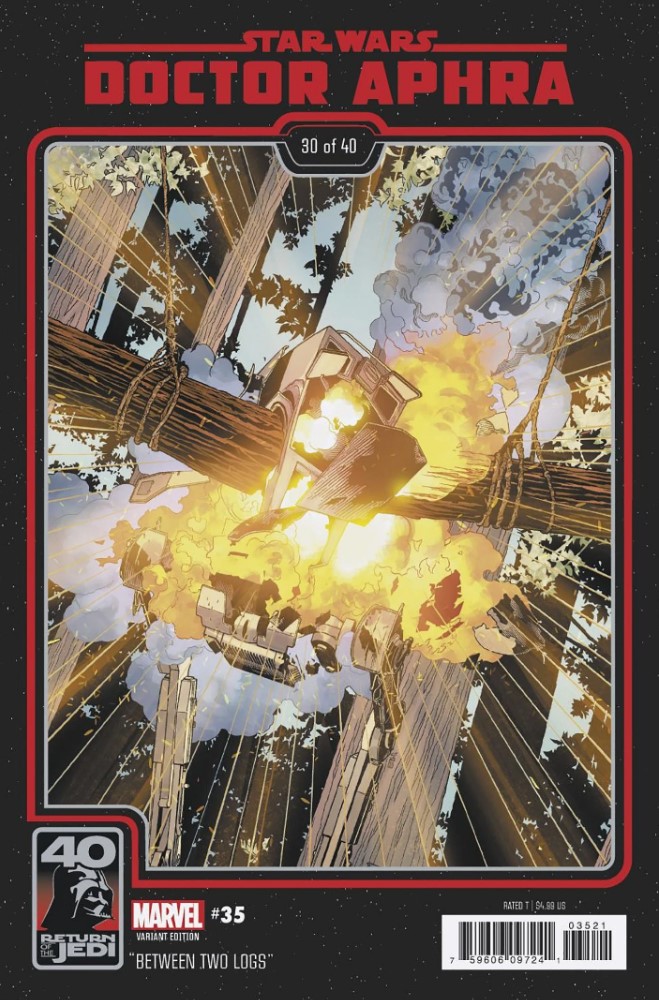 Lucky fires a cable across, digging into the ice as they swing across the chasm only to find the door very much locked. Aphra makes light work of hacking the code and they enter, the lights off and power systems down. They split up, finding the team that conned them dead, circled by Tagge Battle Droids and we end the issue with the two of them surrounded. Another engaging issue, the story of the Tagge Battle Droids a logical one given the excess of the Clone Wars era and as Aphra begins a descent down another confidence-sapping hole you have to wonder how much longer she can keep dodging bullets. It’s a Dark Droids crossover, but so neatly crafted it’s hardly noticeable and feels very much in keeping with the tone of the title. A page-turner as usual, tinged with sadness as Aphra looks down the barrel of another life-blip as she continues to miss Sana Starros while the droid issue escalates.