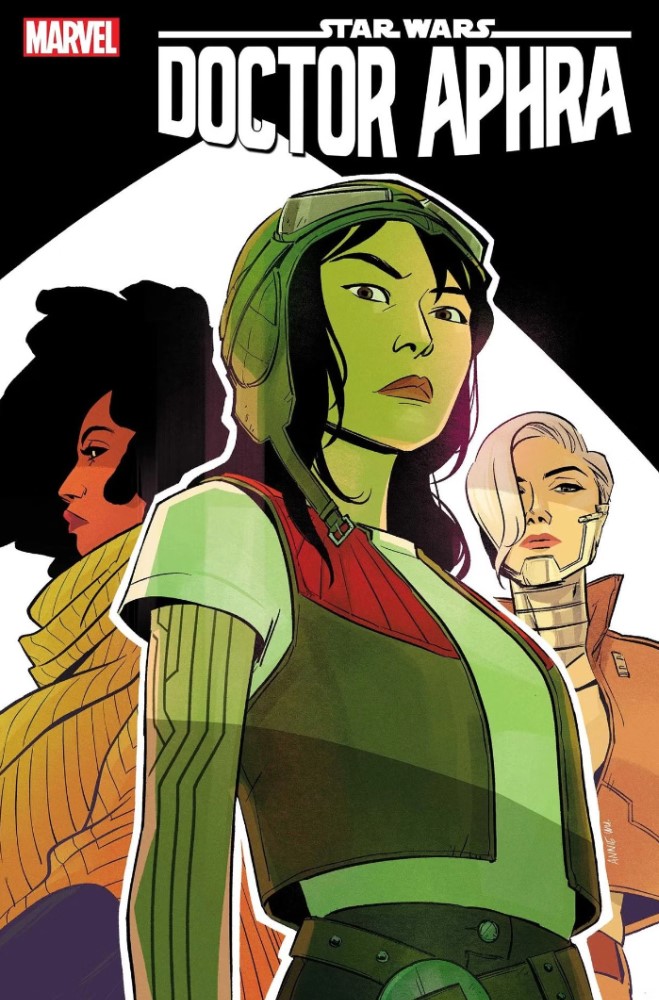 Back in the Outer Rim and Magna Tolvan wakes, secured to a wall surrounded by droids as she hears Kelb scream. The scourge believes the hybroids are the answer to their dilema, and Tolvan hears the screams of her crewmate as back in Tagge space we see the Casus Belli enter the upper atmosphere of Asheris and hammer into the ground, everything onboard incinerated as an escape pod flies away. Inside the pod, Aphra speak to the decapitated head of a droid, a way to communicate with the scourge. She believes she’s speaking to the Spark Eternal, but this intelligence is something more than that, and while it has no interest in Aphra, we cut to its real target; Magna Tolvan, along with fellow cyborgs Lobot and Valance, and the final panel as Aphra sheepishly waits for a door to open, revealing none other than Han Solo’s former wife and Chelli’s ex, Sana Starros….