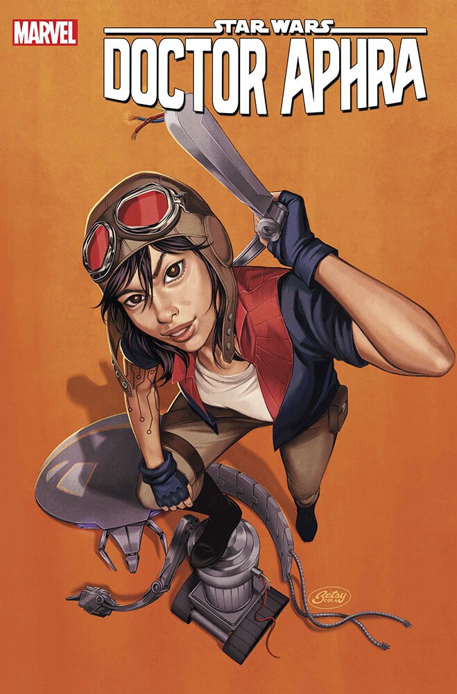 The latest issue of Doctor Aphra continues through the latter stages of the Dark Droids storyline as we open aboard the Acquisitor, Domina Tagge’s flagship as droids continue to attack, her aide Lapin Tagge trying to get her to safety, but instead finding themself jetisoned from the ship in an escape pod as Domina makes the decision to stay on the Acquisitor and protect the data aboard. As the scourge tells a captured Domina they must talk we switch to the Ark Angel IV and Aphra, Sana Starros, Just Lucky and Magna Tolvan who is secured to the bed. Reports of droid attacks are coming in from across the galaxy, but as Aphra informs them that they’re close to arriving sat the Acquisitor, Just Lucky tells her he plans to head to Canto Bight where his brother and Ariole are, and how Aphra owes him. He wants off the ship, and he gets his wish as we see Lucky dropped off on Cantonica and the Ark Angel blast away, Lucky reunited with his crew as he finds Ariole in the casino.