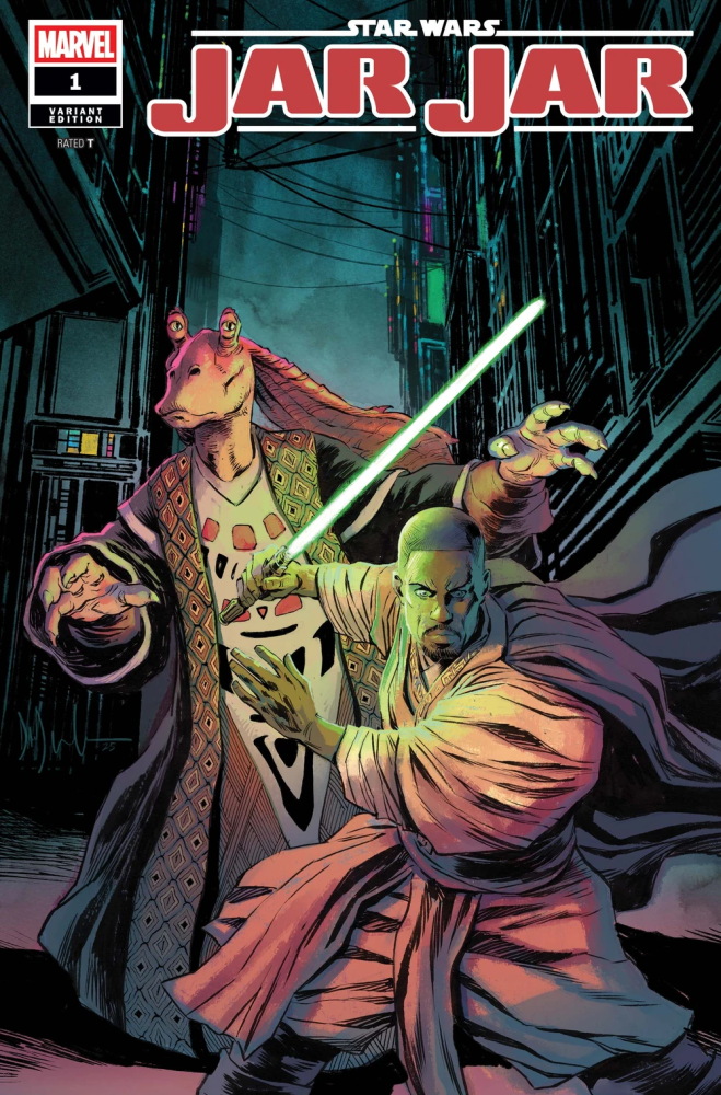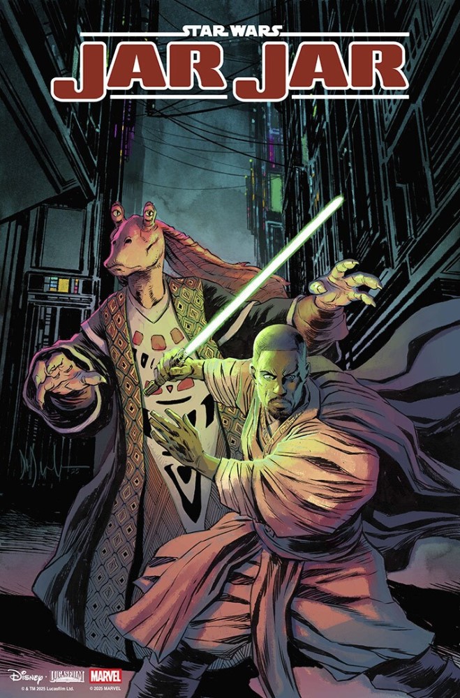 An exciting Jar Jar Binks tale that doesn’t treat our central character like a clown might not have been on your bingo card when you heard that Marvel were doing a one-shot dedicated to one of the most (in equal parts) celebrated and despised characters in the saga (largely depending on your age when The Phantom Menace arrived), but that’s what you get when you open this very pleasant one-shot by writers Marc Guggenheim and Ahmed Best (yes, that Ahmed Best) who manage to keep the Senator Binks that we know from Attack of the Clones very much at the forefront of the story while allowing his iinate goodness and streetsmarts to shine through.